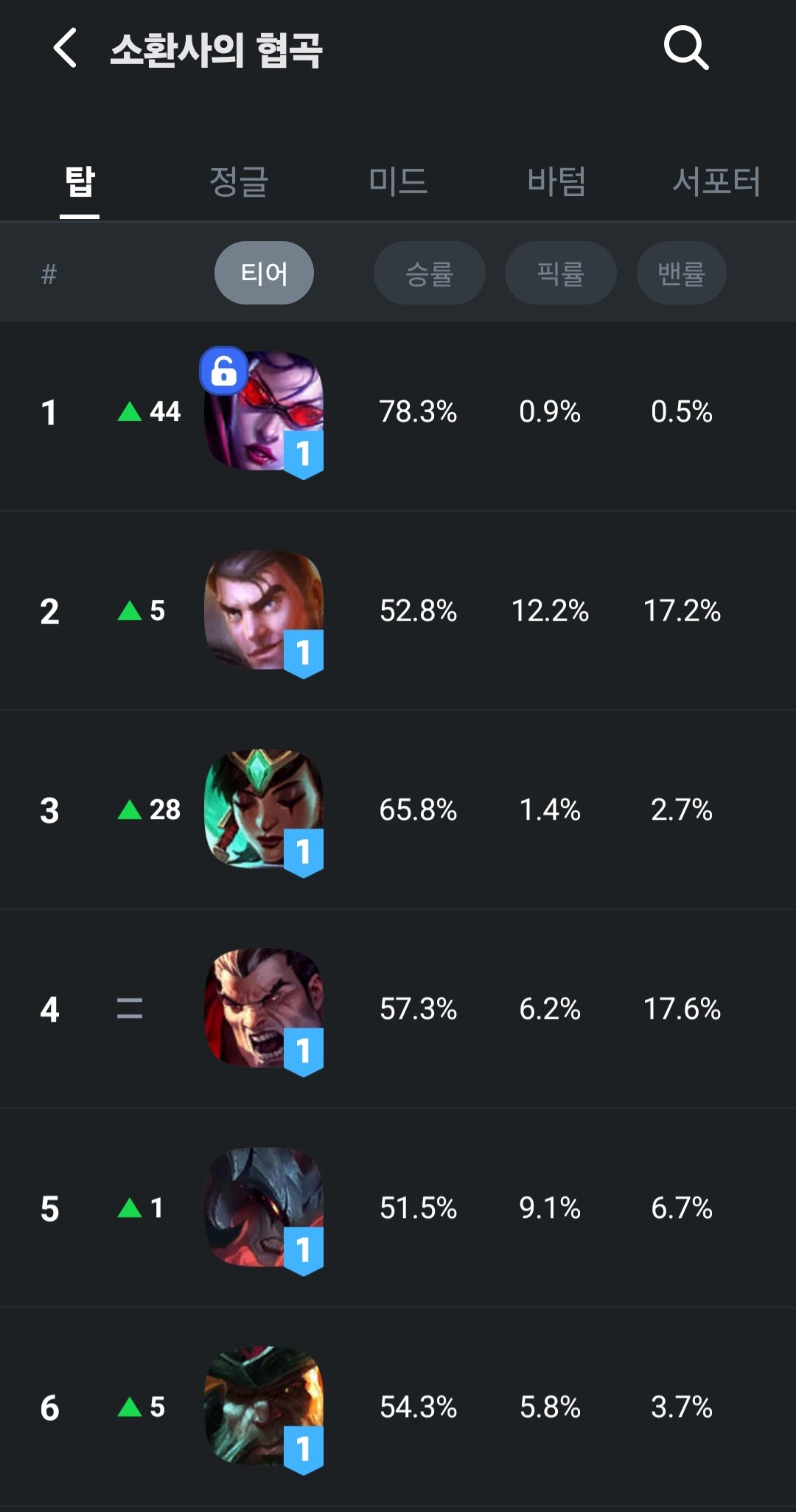 탑 근본챔인 ㅆㅅ끼 다리우스 하나랑 5마리에 ㅈ같은 새끼들이 탑 1티어에 있다..ㄷㄷ