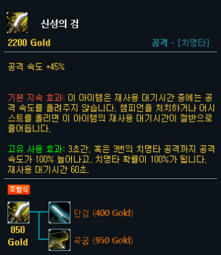 신짜오가 신성의 검 구매해서 공속 45% 삼조격 쓰면 상대편 미드나 원딜은 바로 삭제