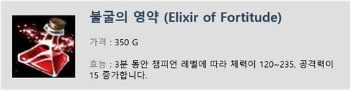 너무 사기라서 초반에 탑 미드 원딜이 도란방패 도란검 도란링 구매 안하고, 불굴의 영약 + 3포션을 시작 아이템으로 구매했음