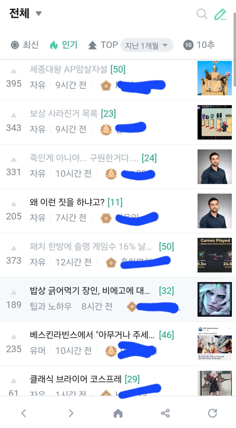 패치하나로 인기글도 점령했네ㅋㅋㅋㅋㅋㅋ
