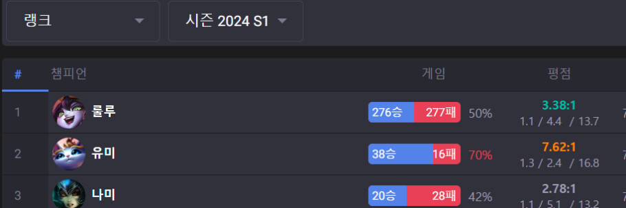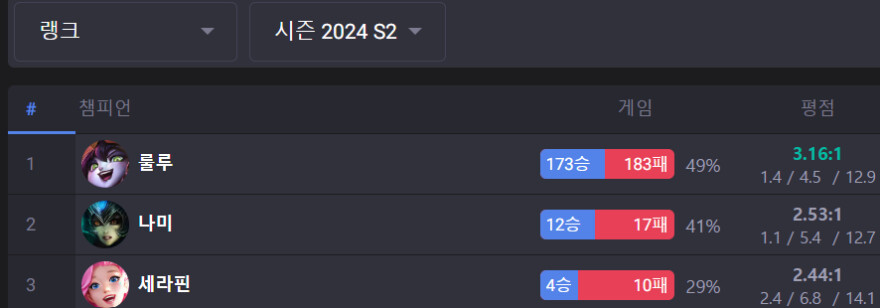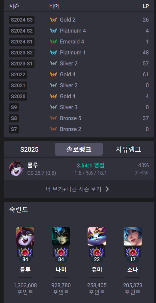 작년에 롤에 미쳐있었거든요.... 1년 동안 룰루 20만점 대 > 130만점 올릴 정도로 ..