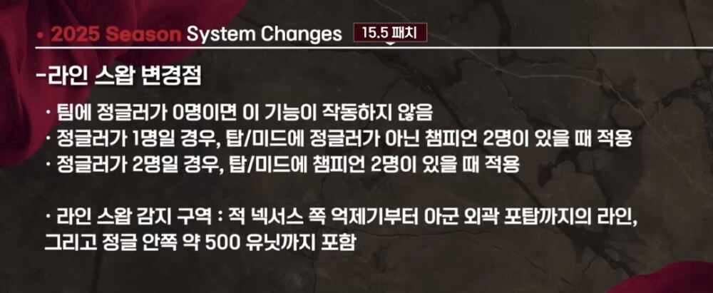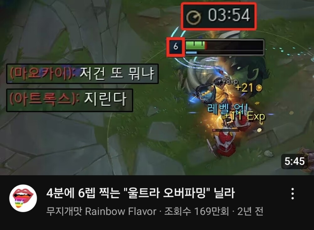 이 영상을 보면 리신과 닐라가 상대 억제기 옆 벽을 넘어가 오버파밍을 하는 것을 볼 수 있는데, 우리는 다음에 나올 이것에 주목해야 한다. 그렇다. 상대 억제기를 넘어가 오버파밍을 하면 라인 스왑 패치가 적용되지 않는다. 무지개맛은 이걸 내다보고 오버파밍 닐라를 출시한 것이 아닐까?
