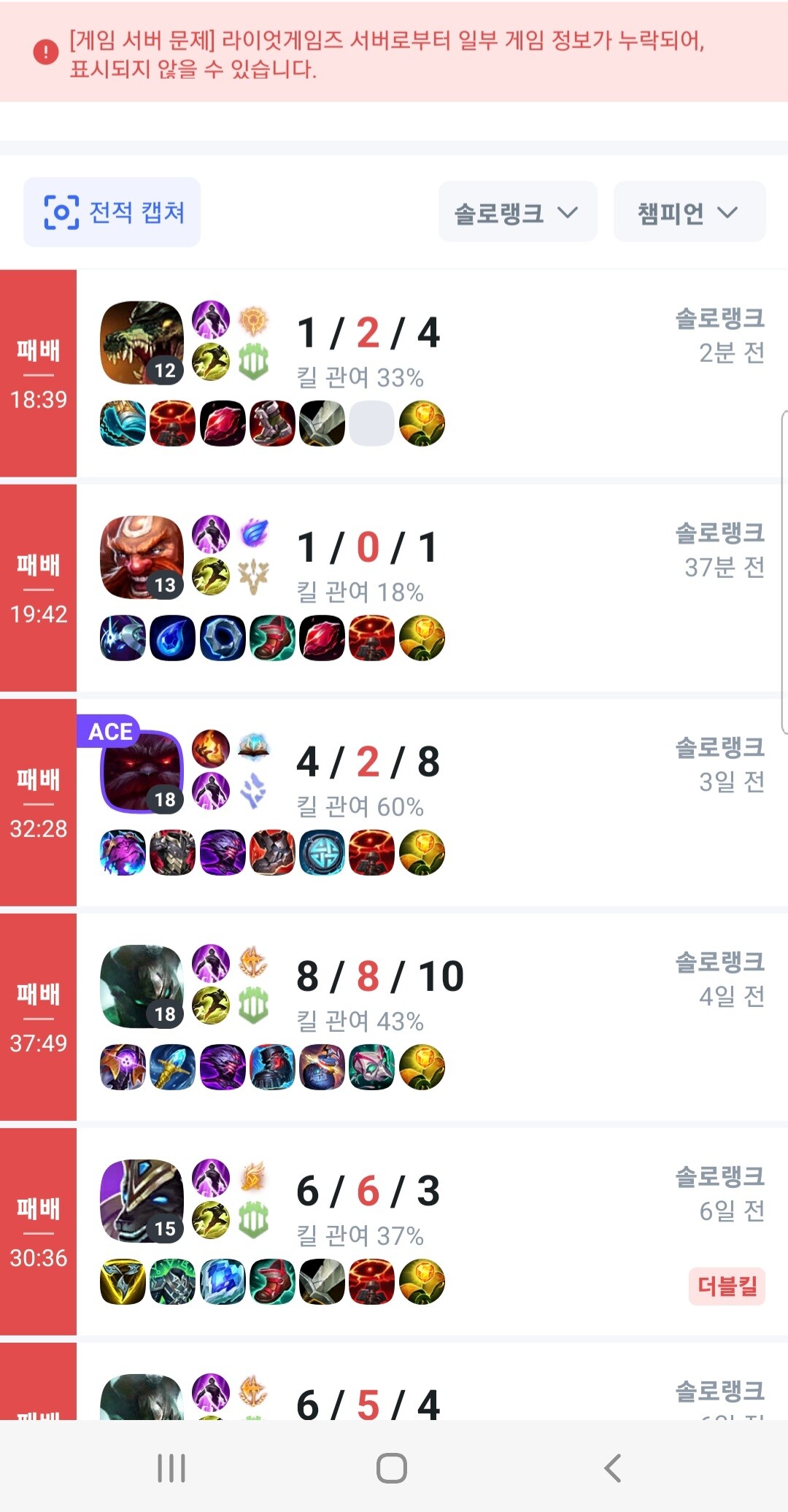뭔 바텀이 8연속으로 터지냐고 계정 새로파야되는거냐 계정에 마가 씌웠냐