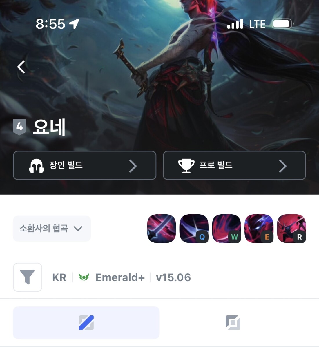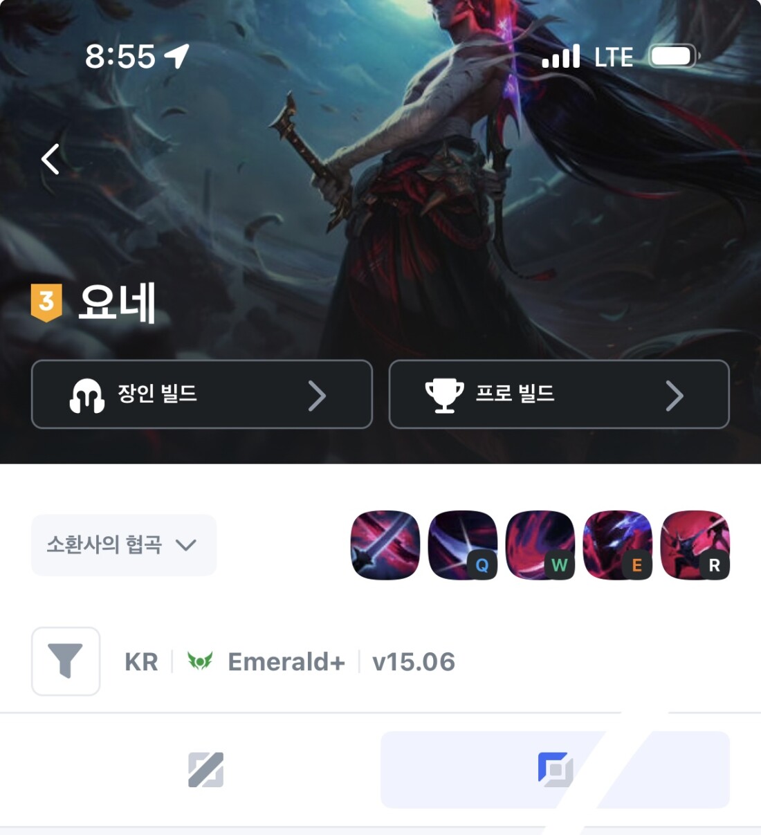 15.06 미드 15.06 탑 15.05 미드 15.05 탑 요네 스킬셋이 사기인건 맞는데 이미 체급 ㅈㄴ낮아져서 이번패치 이전까진 항상 3~4티어에서 놀던 챔프임ㅋㅋ 제발 날조는 하지말자