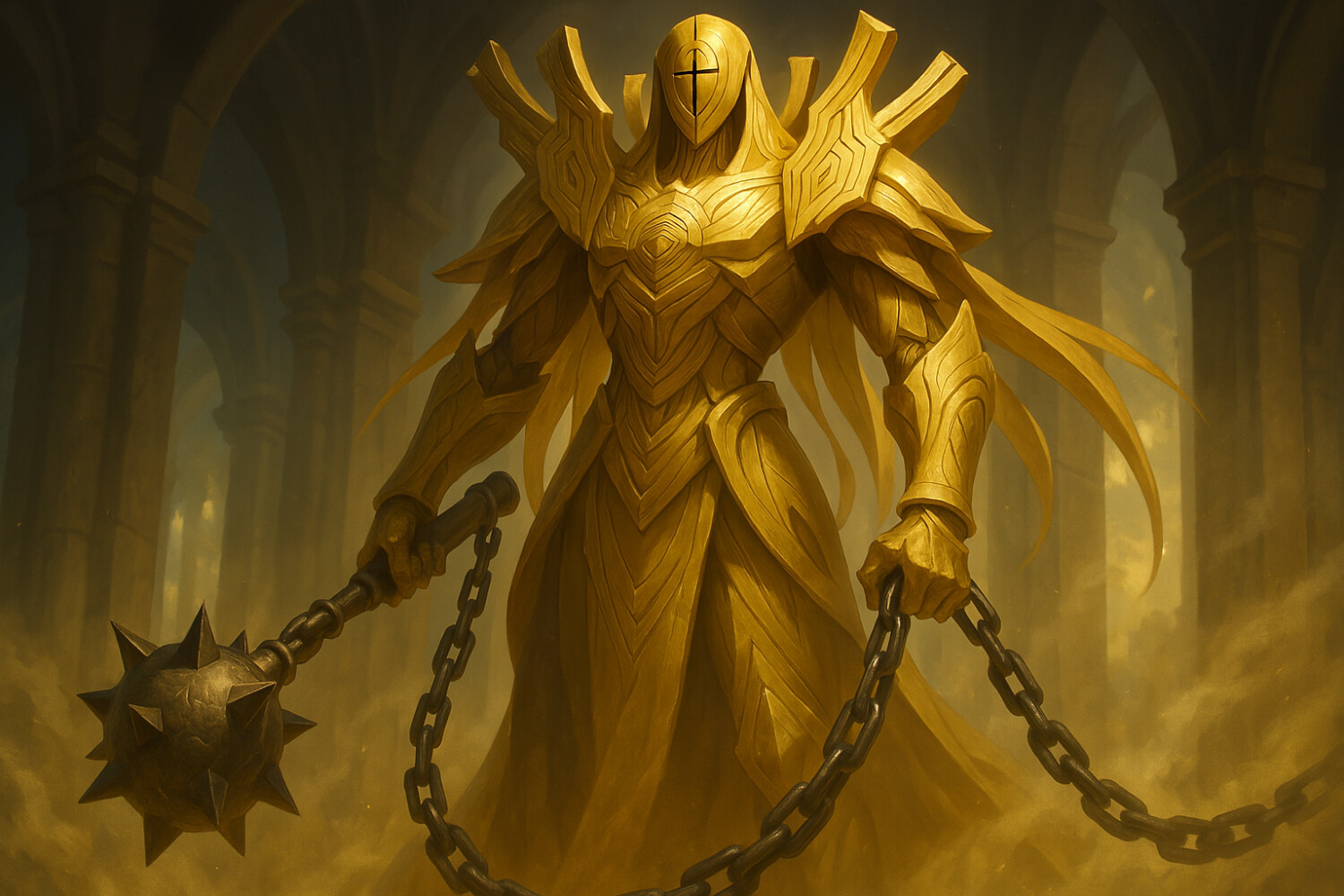 > 기본 효과: 3초 동안 자신을 중심으로 메이스를 원형으로 휘둘러 매초 물리 피해를 입히고, 적을 25% 둔화시킴. 휘두르는 중 스킬을 다시 사용해 단계를 변경할 수 있음. 총 3단계, 각 단계별로 효과가 바뀜.