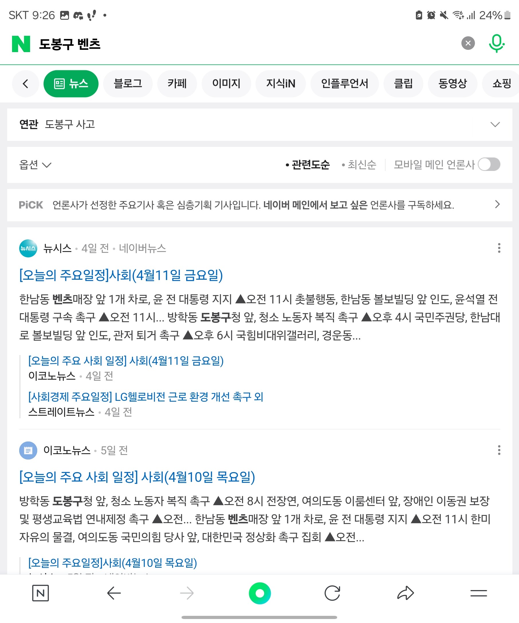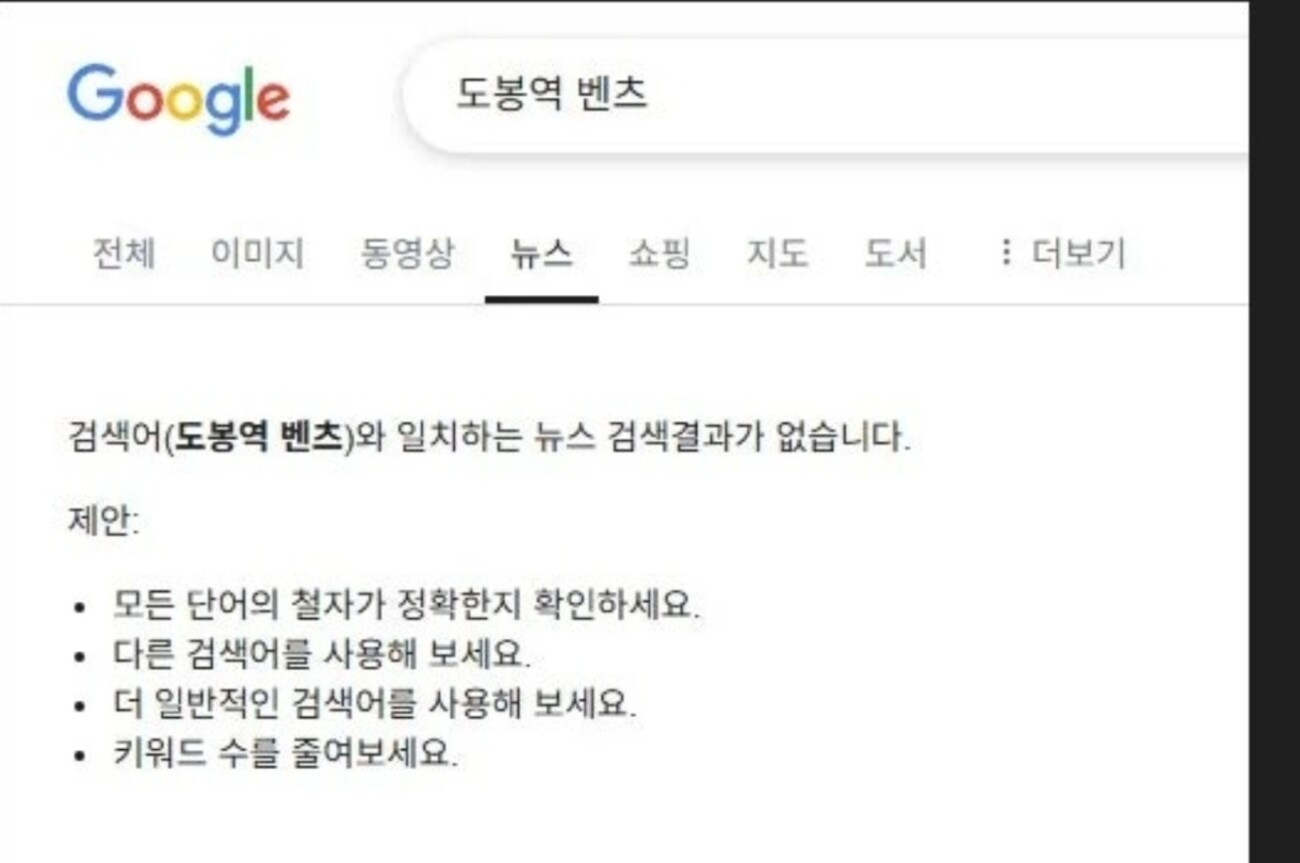 구글 뉴스텝에 "도봉구 벤츠"를 치면 연관된 뉴스는 일절 찾아 볼수 없으며