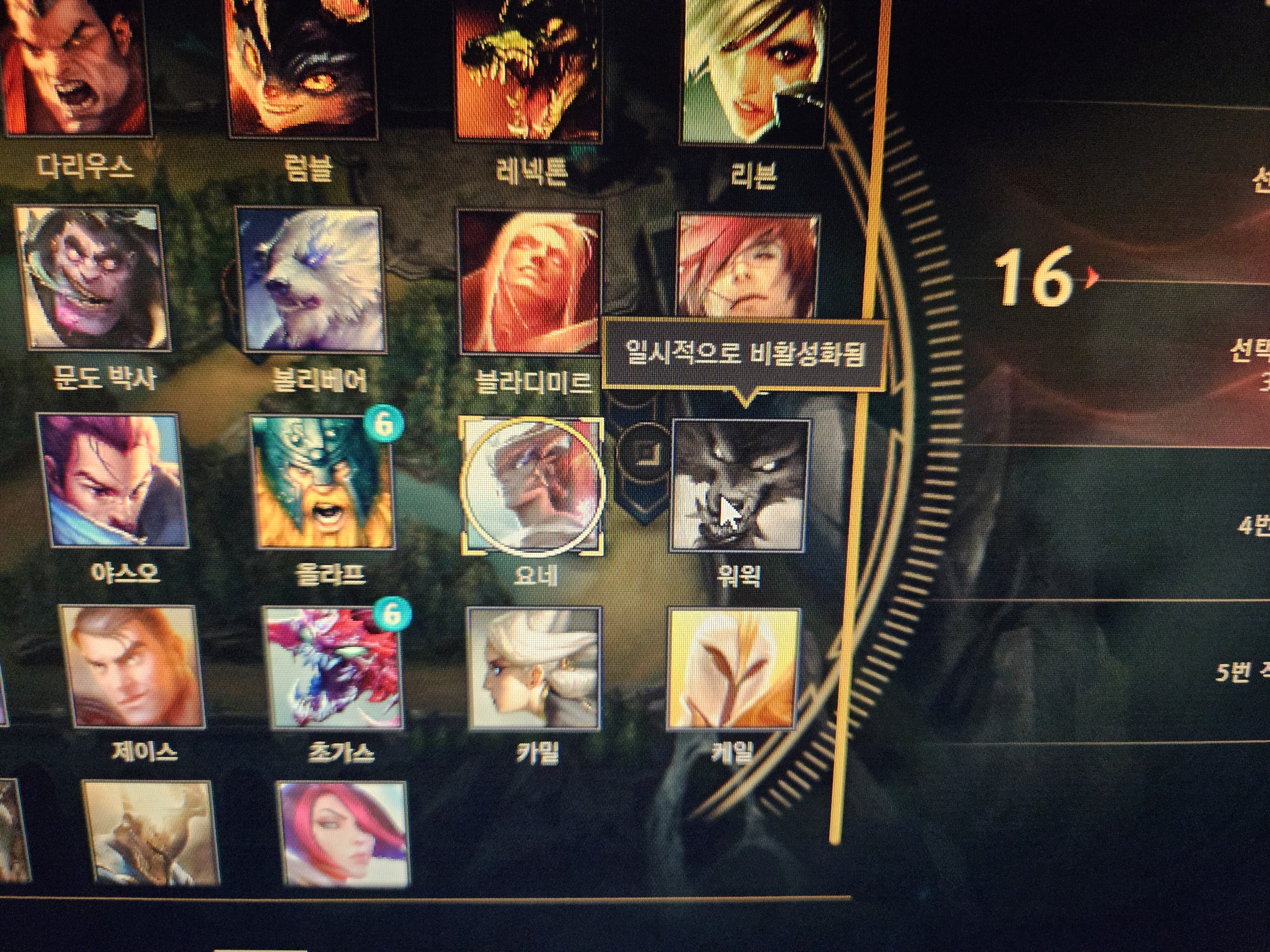 랭크 돌리는데 워윅 원챔인데 워윅 닫혀있네ㅋㅋㅋ 뭔 버그 있어서 닫아놨겠지 싶으면서도 공지도 없이 닫는건 좀 아니지 않냐ㅋㅋ