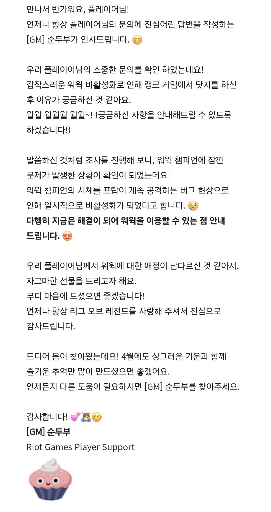 워윅 비활성화 된 이유 알아옴