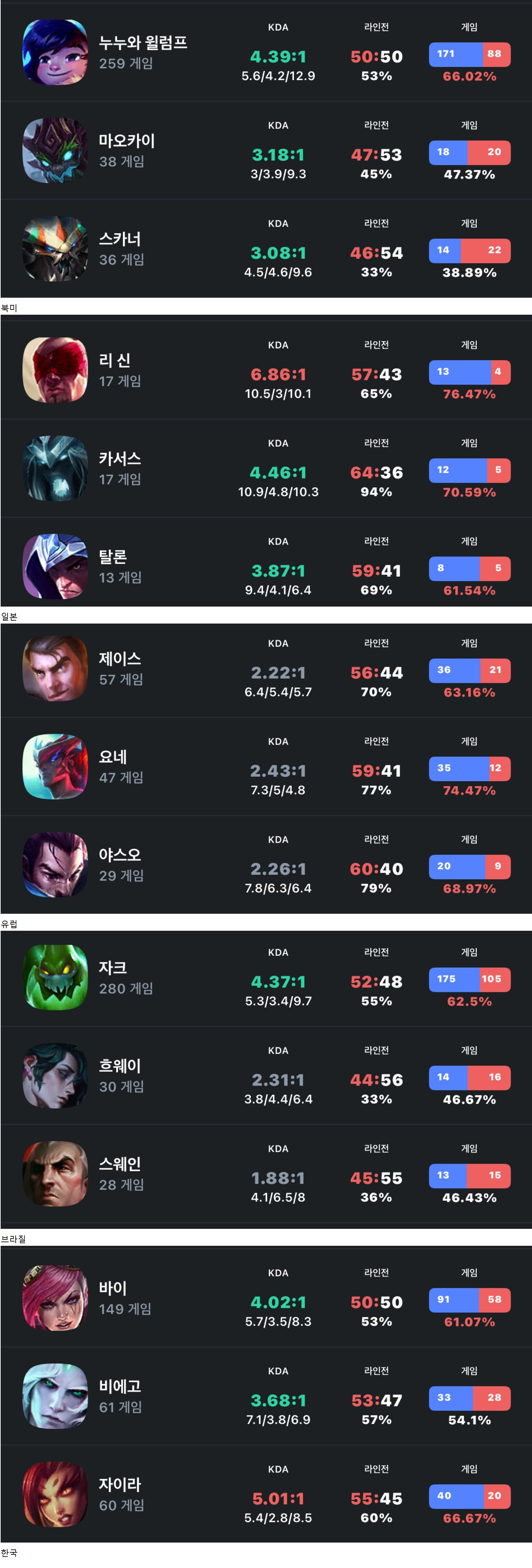 전세계 솔로랭크 1등들의 모스트 챔피언 탑3를 알아보자