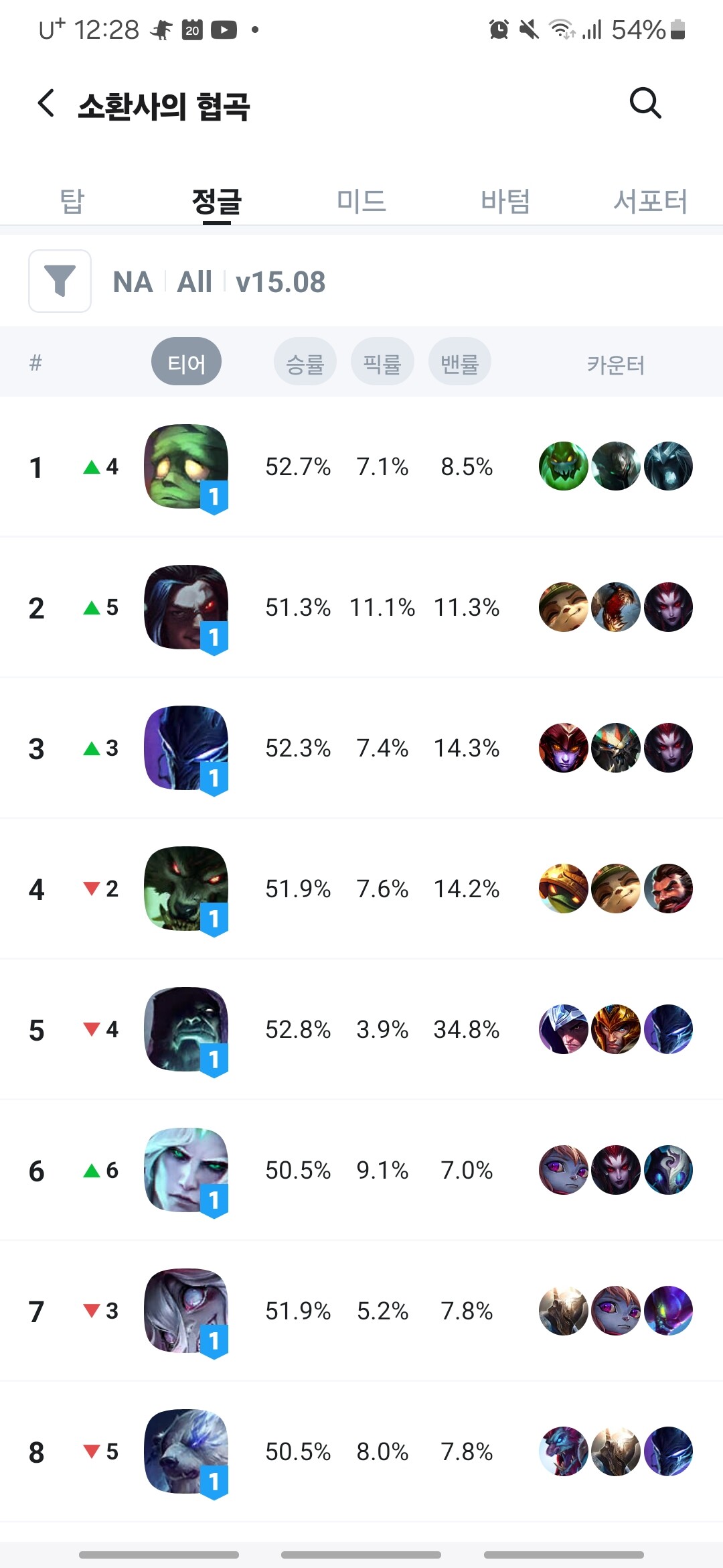 픽률 4.3에 승률 46퍼 밴률 1퍼대의 북미한정 공무원이 아닌 노숙자 리신 그리고 스크린샷 맨밑에 쬐끄만하게 보이는 정글5초조루남