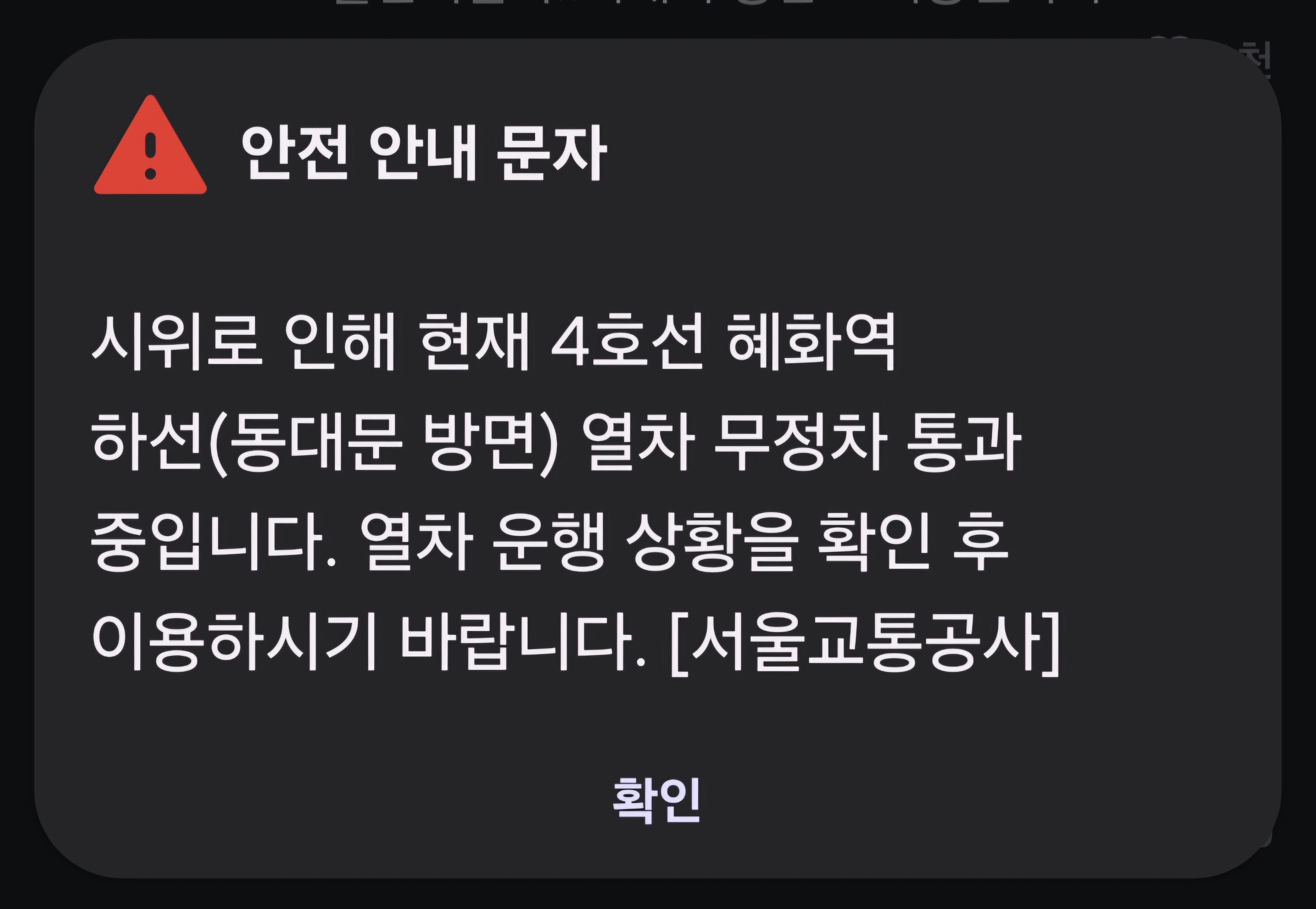 벌써 어디역 정차에 혜화역 무정차 통과만 5번 넘게 이러고 있으니까 슬슬 화난다.