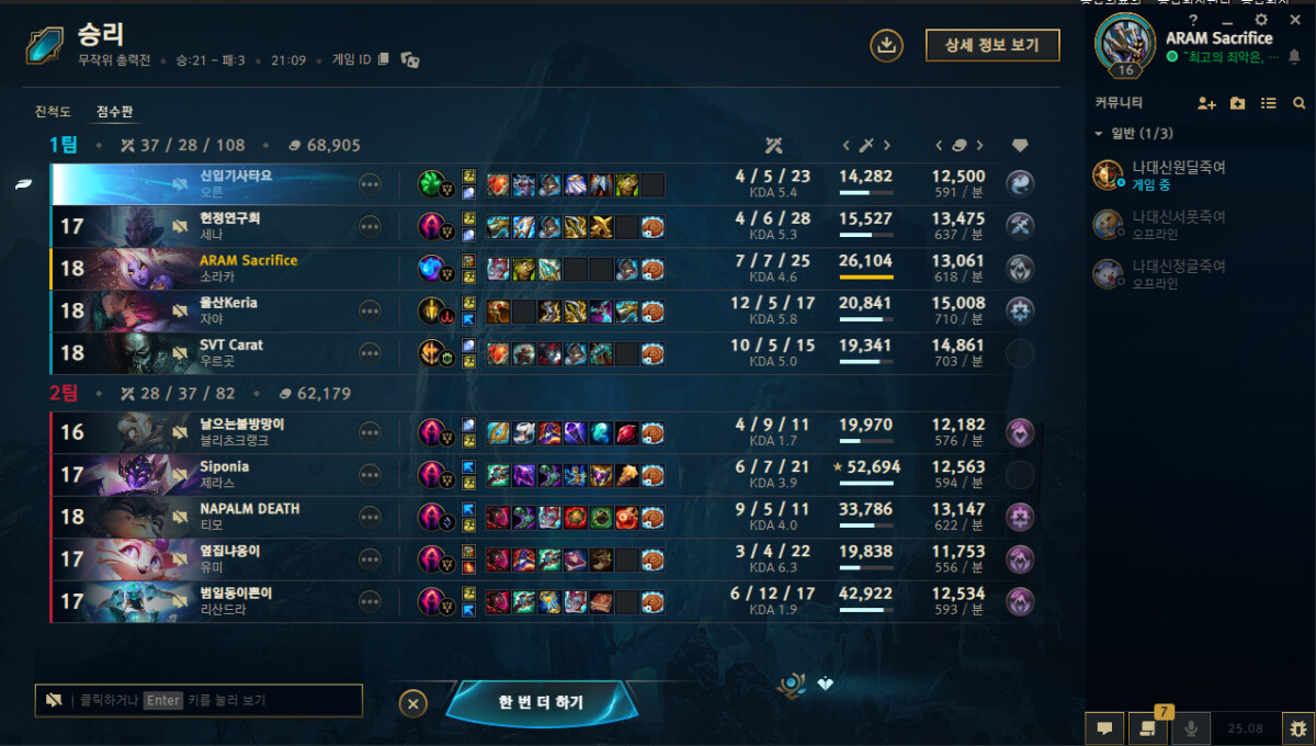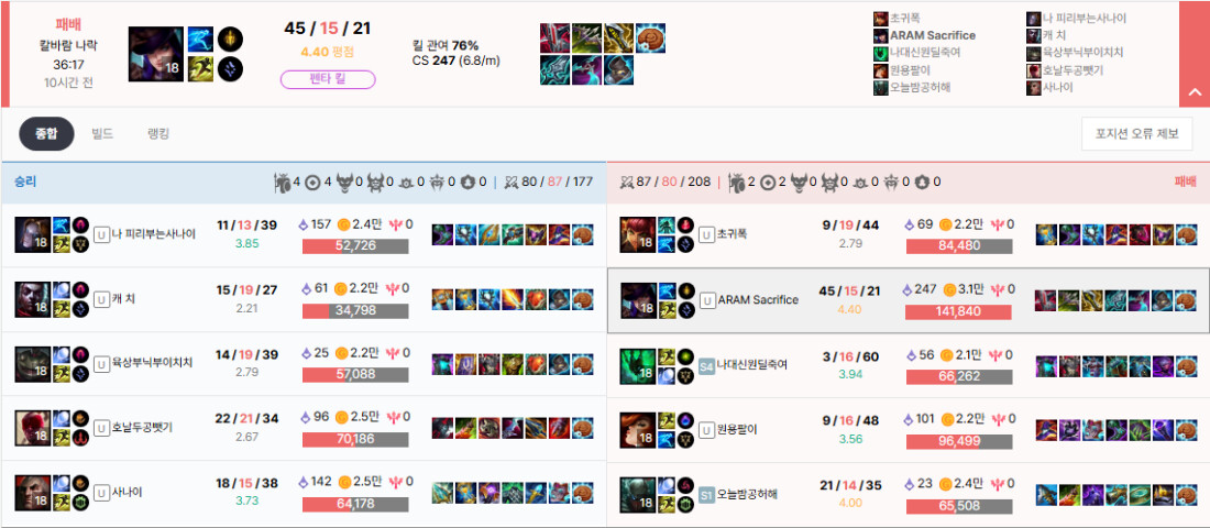 칼바람은 이기고 싶으면 다인큐 하세요, 솔로큐는 너무 슬픕니다.