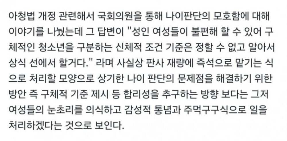 "성인 여성들이 불편해 할 수 있어" 성인 남성들은 어디갔는데? 이새끼들 로리만 잡고 쇼타는 안잡을거라는 소리를 대놓고 하네