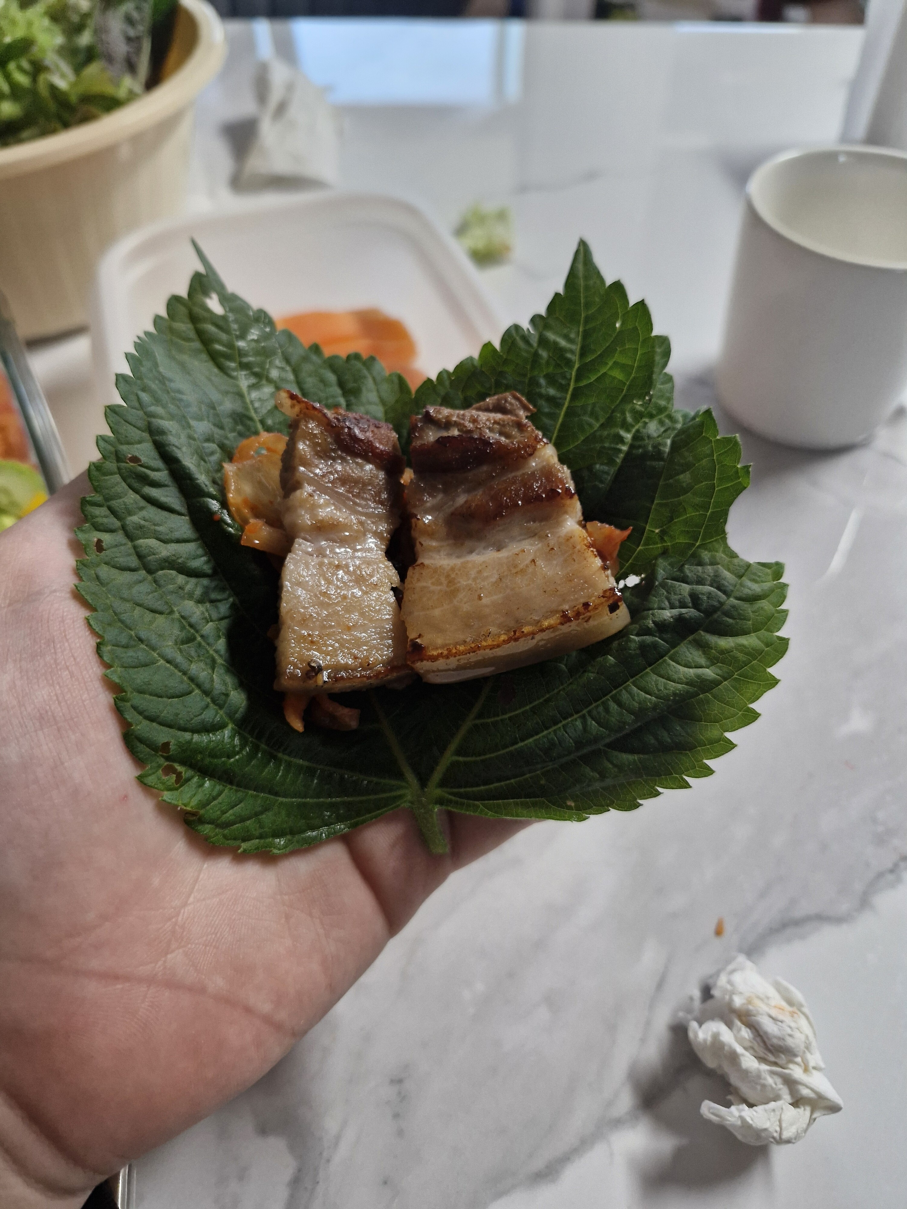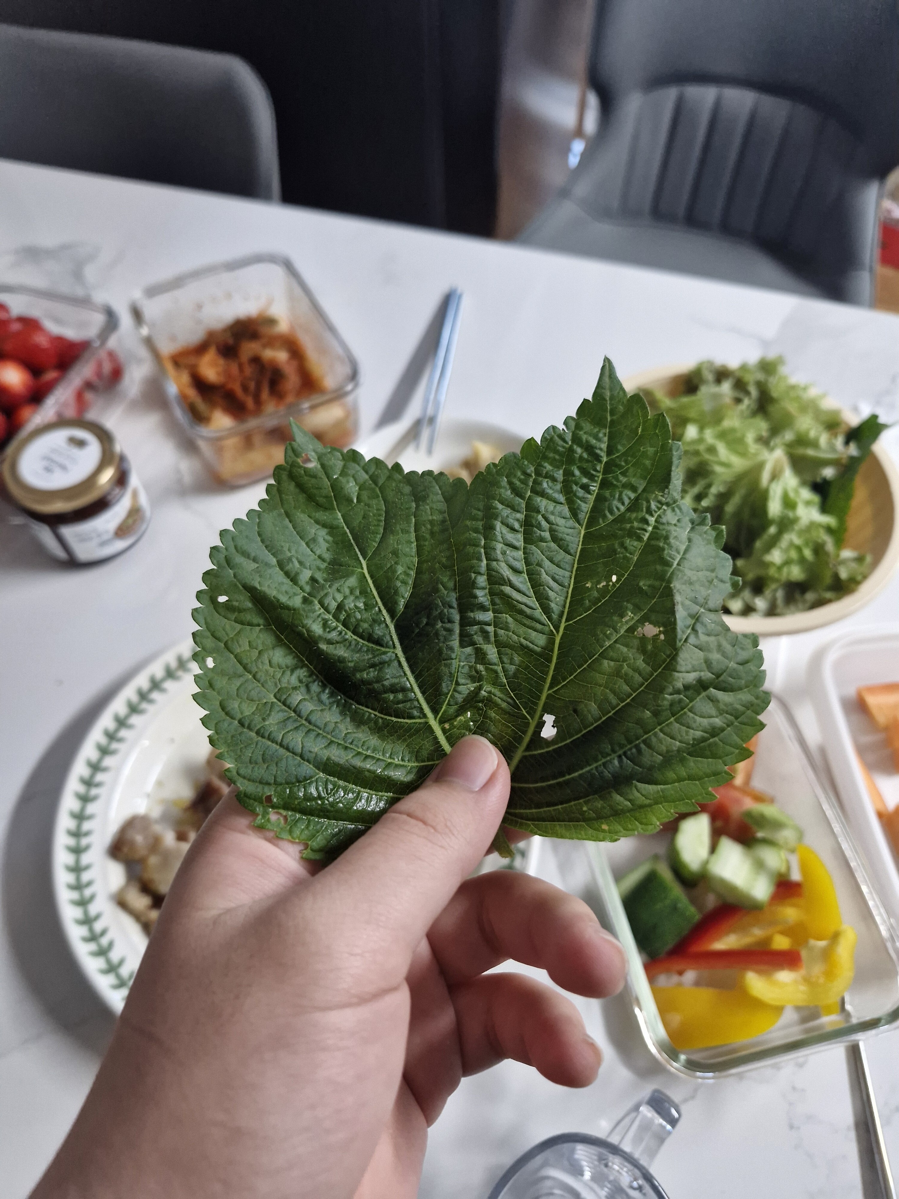 오늘 저녁으로 집에서 돼지 고기를 먹다가 깻잎을 먹는데 신기해서 올린다. 그것은 바로... 샴 쌍둥이 깻잎~(참고로 우리 아빠가 이렇게 말함) 모양이 무슨 일러스트에서 잎 모양을 곂치고 패스파인더한 모양 같아서 올리게 됬다. 참고로 그후 나는 잎 면적 각각에 고기와 김치를 올리고 곂친다음 한입에 먹었습니다~ 역시 엄마가 해준 고기 맛있다~