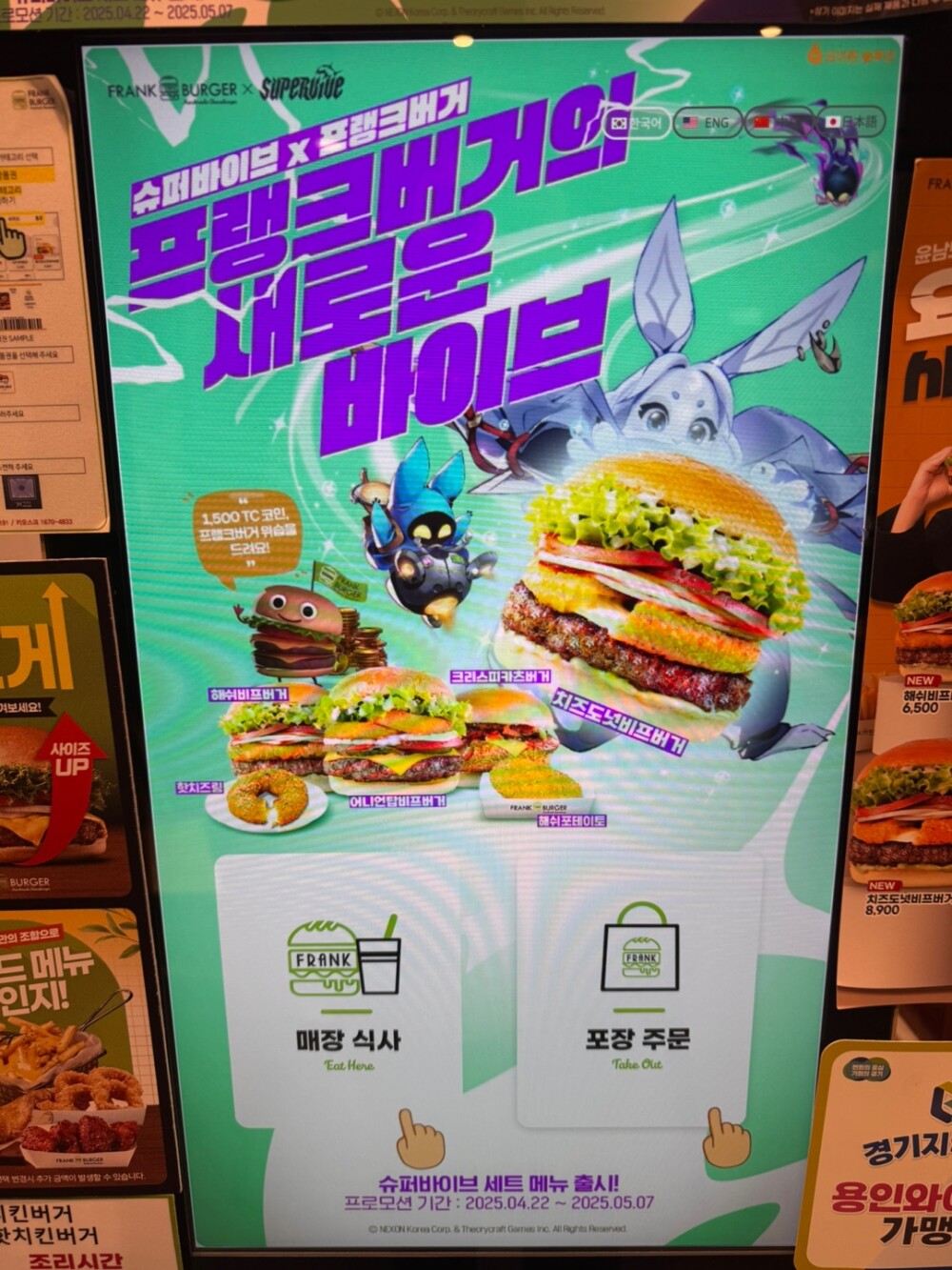 슈퍼바이브 하는데 프랭크버거에서 쿠폰 주는 중임 신메뉴버거 4종 중에 골라서 세트 먹으면 핫치즈링+게임 쿠폰까지 그냥 햄버거 먹으러 간 건데 보너스 받은 느낌ㅋㅋ 버거 맛도 괜찮았고 핫치즈링도 은근 중독됨 한 번쯤 사먹을만함