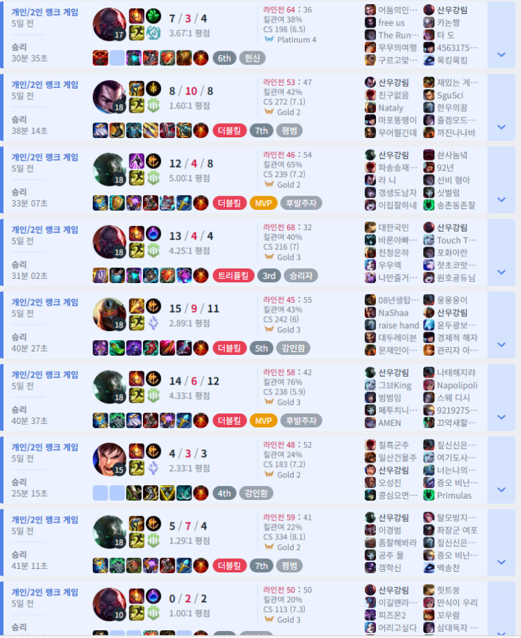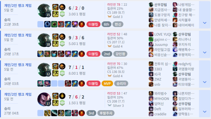 형누님들도 멘탈 잘 케어하면서 묵묵히 할꺼 하면 승률이 오르는거 같아요 너무 서렌 남발하지 말구요.