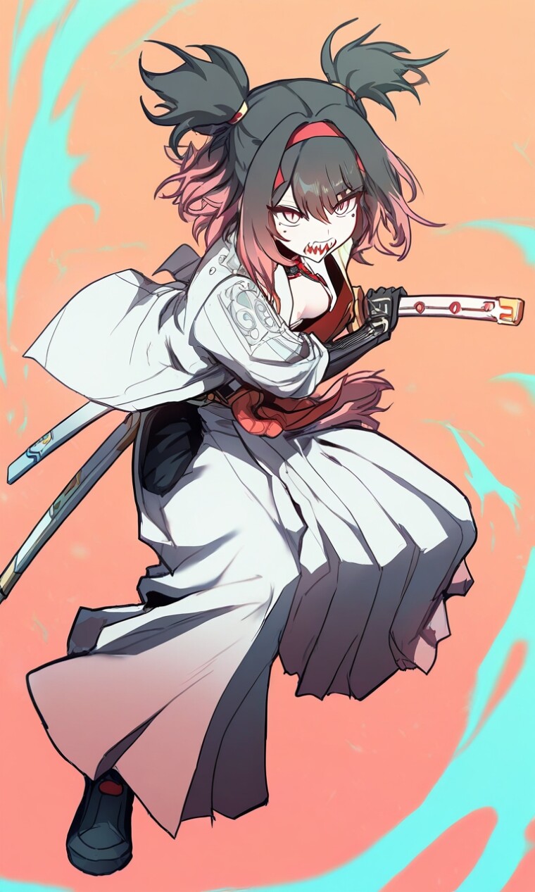 그렇다면 히스이의 특징을 봐야합니다 그라데이션 머리 양갈래이지만 짧은 양갈래 그라데이션 눈 눈밑점에 상어이빨이 있군요 이것을 영어로 바꾸어 넣어줍니다 여기서 포인트는 무조건 hisui(eternal return),hisui, hisui er를 넣는 것입니다 일단은 히스이가 나와야하기에 히스이와 관련된 모든 것을 때려박아줍니다 그렇다면 이런그림이 나오는데요 잘만들어진 것같습니다 하지만 저는 한명이 필요하지 여러명이 필요하지는 않죠