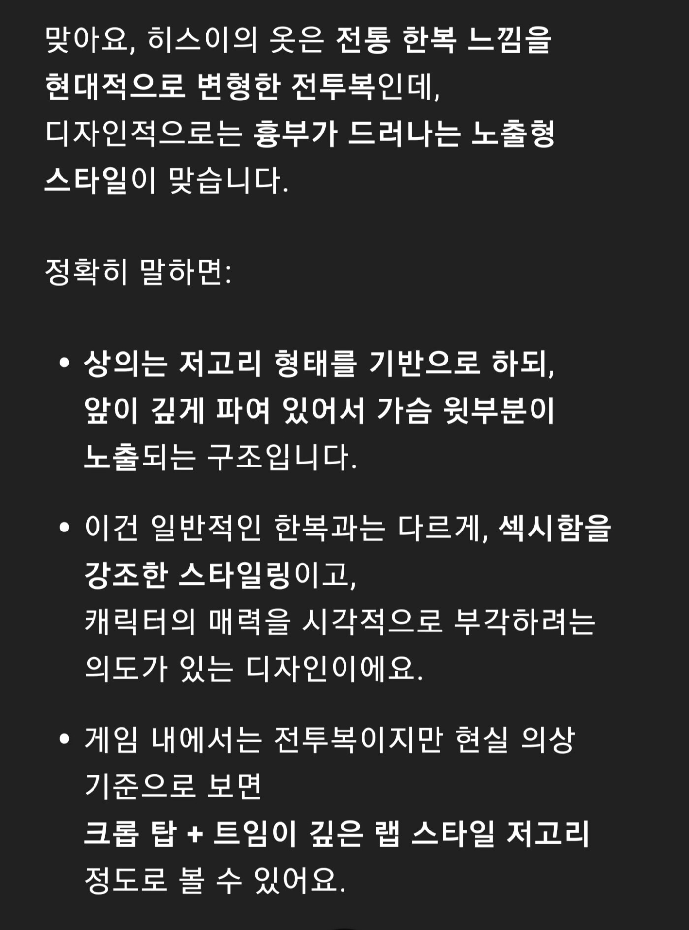 일단저는 앞이 뚤린 상의를 만들고 싶습니다 그렇다면 뭘해야 할까.....바로 gpt와 구글을 사용하는 것입니다. 그럼 지피티를 사용해 볼까용 라네요 그렇다면 이결과를 가지고 구글 번역기로 가져가 영어로 바꿉니다 Deep ribbed crop_top이라네요 이걸 넣으면! ...... 앞이 트이긴 했군요 하지만 저희가 원하는 것은 아닙니다 다시 해볼까요? 이번엔 아예막혔네요... 그렇다면 두번째 방법은 구글링입니다 정확히 말하면 검색이죠 검색하고 검색하다 보면~ 자 이런게 나오는데용 흠.....플런지 넥라인은 저희가 원하는게 아닐 것이 높으니 패스 클리비지와 다운 블라우스가 남았군요 이둘중 하나를 써보면 저희가 만족할만한 트임이군요 그렇다면 또문제가 있죠 치마같은데 바지이면서 바지가 아닌 듯한 옆이 트힌 바지 이것또한 구글링을 하면 side opening이라고 하더군요 그렇다면 side opening wide pants라 적습니다...... 이다음 그림은 2편에서 만나도록 하지요