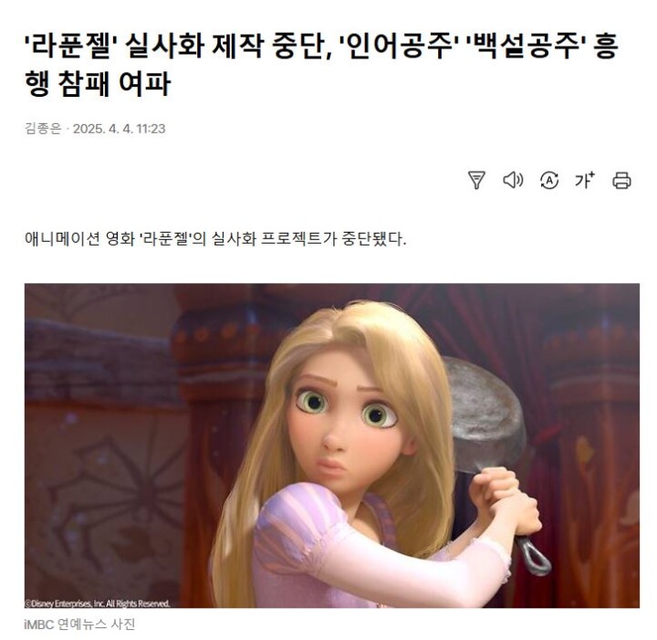 흑어공주, 흑설공주 연속 폭망으로 인해 라푼젤 실사화가 제작 중단되었기 때문 ㅋㅋㅋㅋ