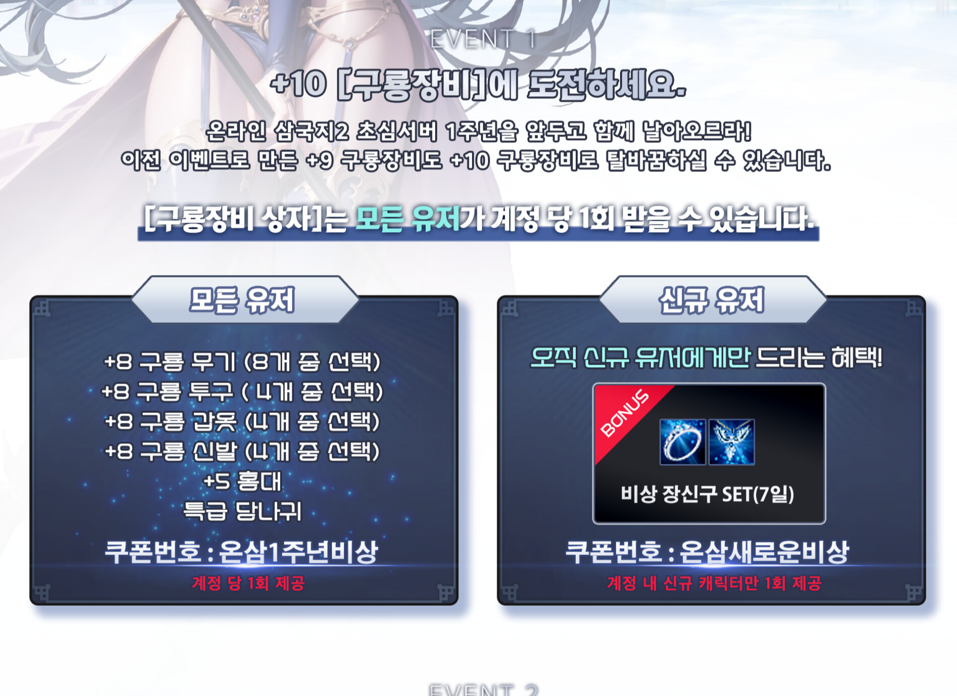 +9구룡장비 강화하면 영구적으로 쓸 수 있음 나는 이거만 성공하려고 요즘 겁나 함 쿠폰번호 입력하면 주는 템들도 짱짱해서 저거만 받아도 괜춘할듯 근데 난 +10 만드는게 목표긴해..ㅎㅎ