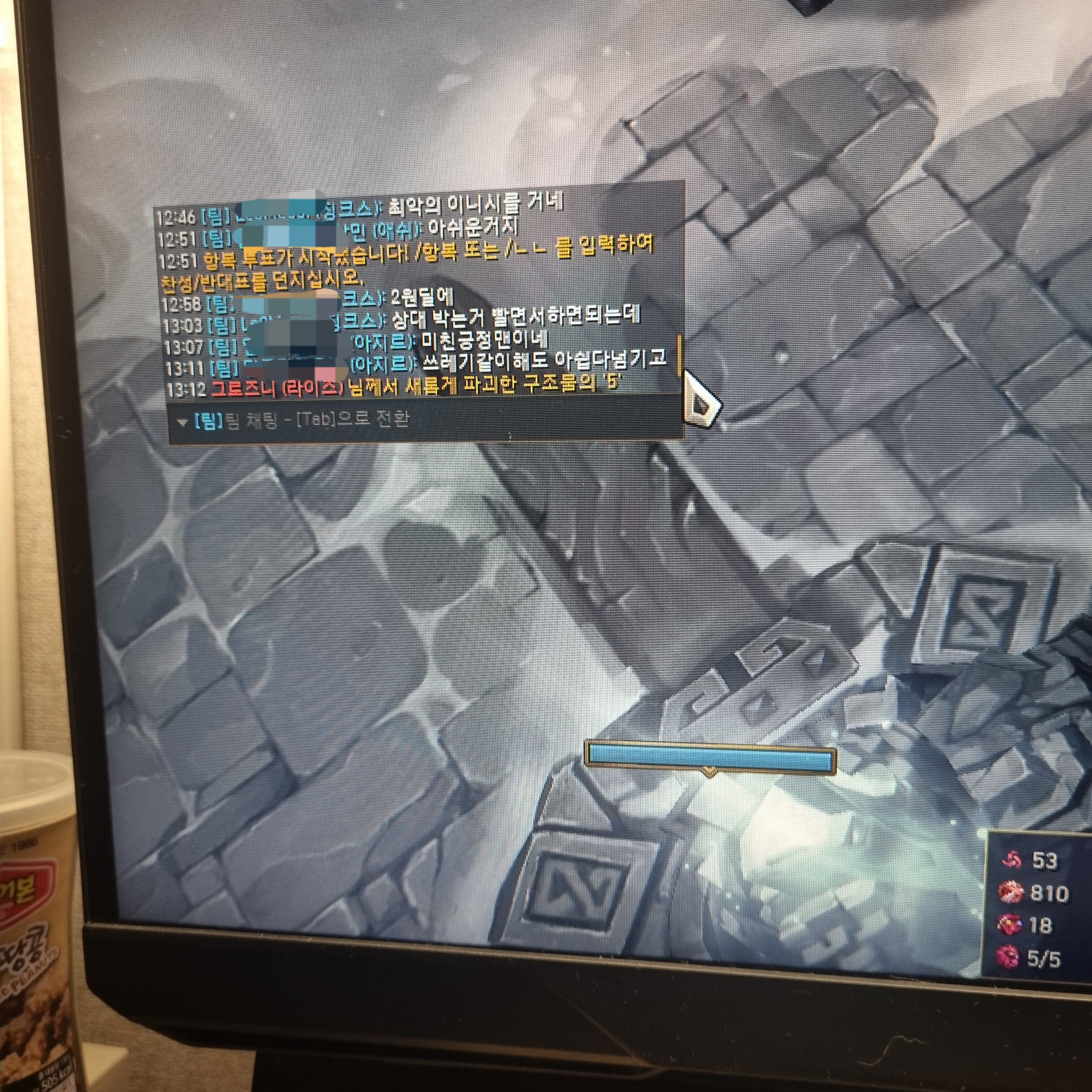 상황:무무가 갑자기 붕대 두번다 허공 날리더니 인정안하고 눈덩이로 들어가서 1인궁 박고 cc사라져서 아군 다갈림 나는 최대한 딜하다가 죽고 징크스랑 나머지 애들이 욕하려고 하는것같길래 아군 진정시킴 그러고 게임 종료후 홈 화면서 명예 내려갔다고 작은 탭창 뜸 모두 화나면 기억하세요 '아쉬운거지'