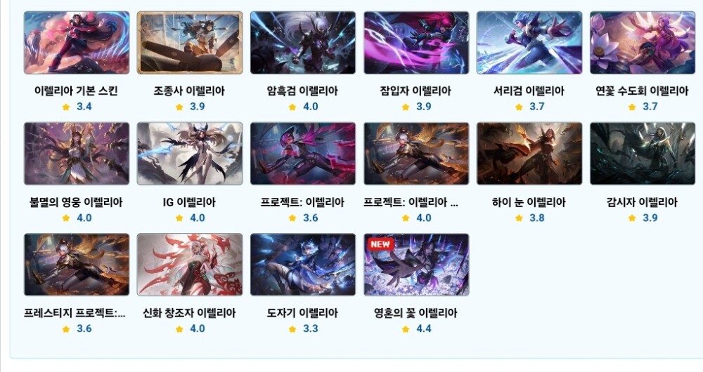 일러스트(럭스랑 똑같이 ㅈ나 이쁘다) 점수(영꽃은 실패할수 없는 스킨이라 역시👍) 인게임 사진 인게임 (애니매이션) 제 개인적 평으로는3.9점이라고 생각합니다 일단 이펙트는 이쁘고 좋은데 타격감이 없다고 생각해서 여러분의 생각은 어떠신가요