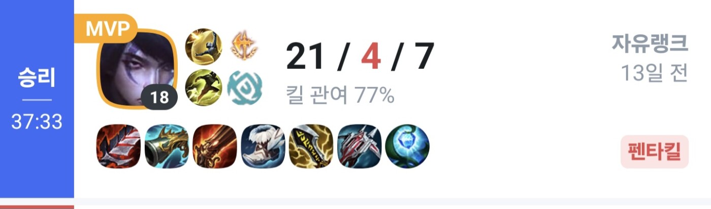 최근엔 펜타킬도 함...