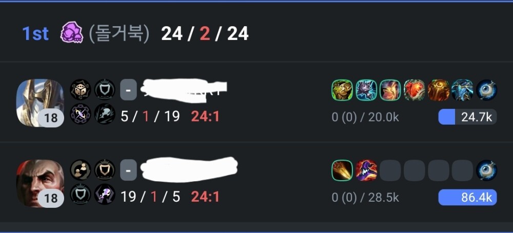 1라운드 증강선택에 무작위 프리즘으로 프리즘 능력치모루 증강먹고 공생돌연변이 + 스웨인 도박꾼 칼날 = 7라운드 모루 40개 넘음