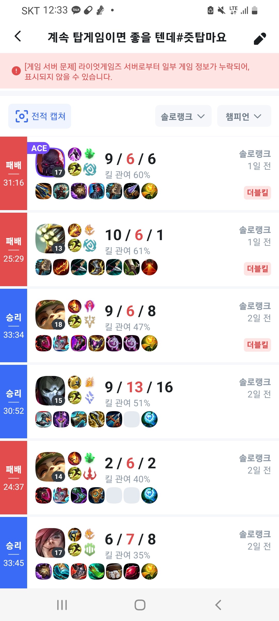 앞으로도 솔랭은 몇판정도 더 해볼듯