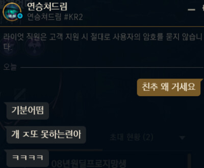 내가 로밍도 다니고 다해주는데 진짜 말투부터 게임 하는거까지 다 너무 싫고 정글이랑 듀오라서 쌍으로 난리치는데 진짜