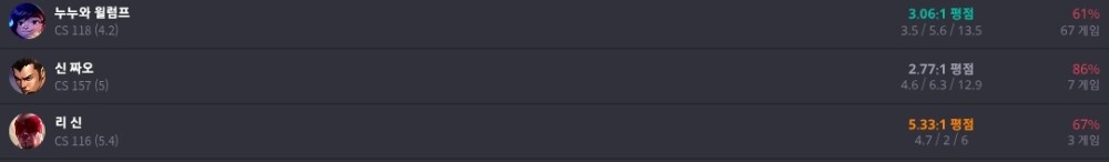 서폿할때마다 울정글들 개못해서 서폿 접고 정글했는데 신짜오 리신 첫판인데 이정도면 정글이 주라인인 애들 반성해야지;;