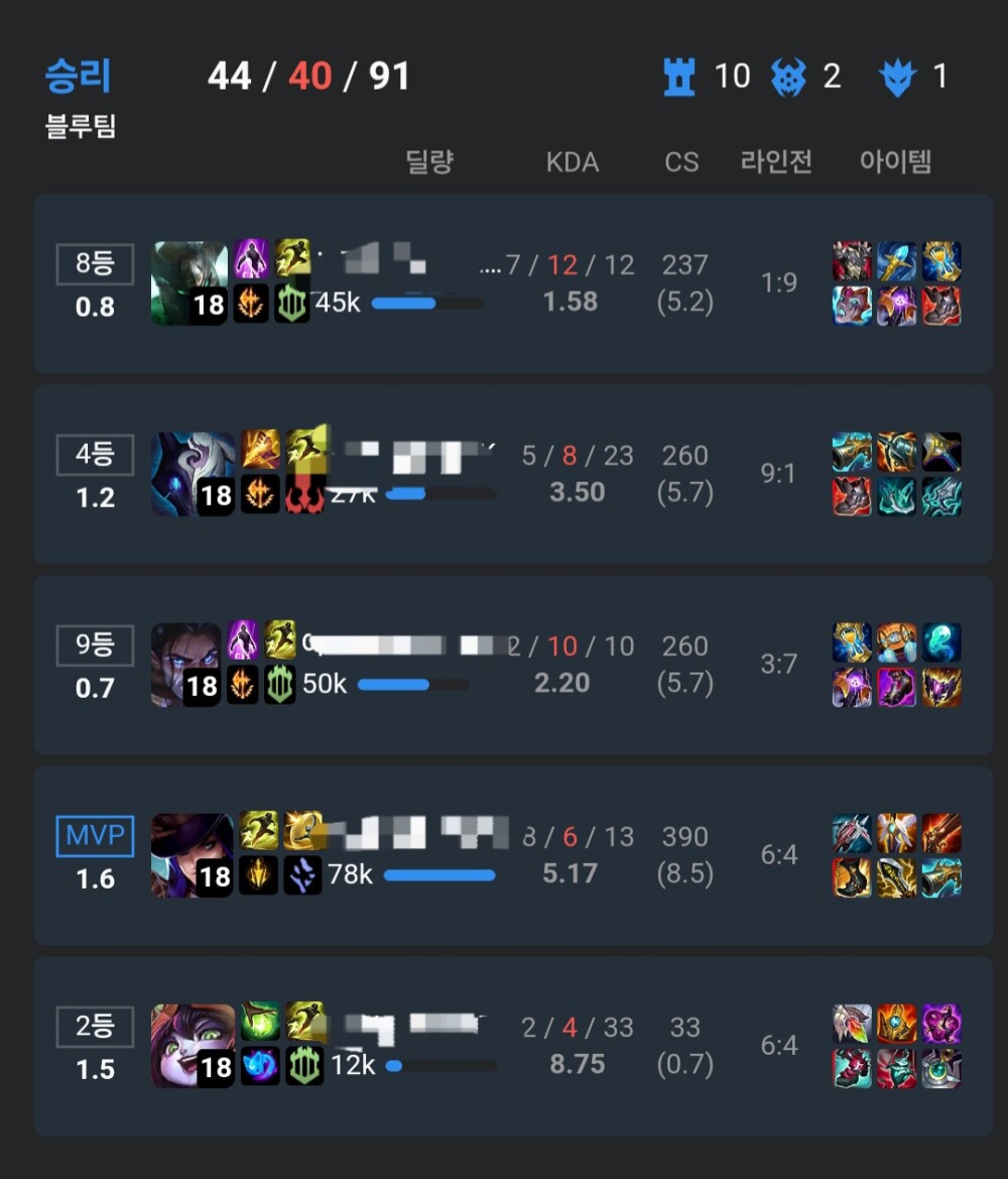 지표는 라인전 이겼다 뭐 이렇게 써있는데