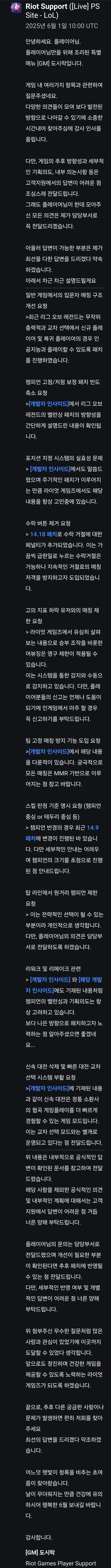 아~ 예, 뭐어~ 라이엇은 쥬우우우우운네~ 개을러서. 답변도 메크로로 줄거라네요오오~