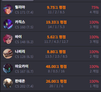 본인도 매시즌 카직스만해서 그마챌턱 왔다갔다했는데 한두달전부터 다른거 연습하면서 다3구간 부캐 돌렸더니 성공했다 물론 하나만 파는거 좋아하는 성격이고 잘맞긴한데 정글이란 포지션 자체가 원챔 했을 때 장점보다 단점이 많아서 챔폭 늘렸는데 훨 나음 ㄹㅇ