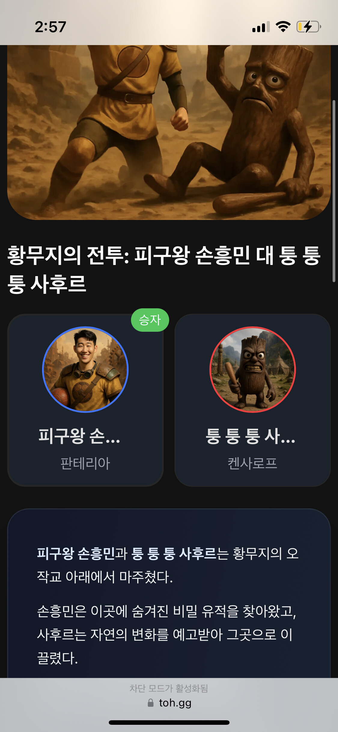 캐릭터 만들어서 ai로 배틀하는건데 피구왕 손흥민 개쎔.
