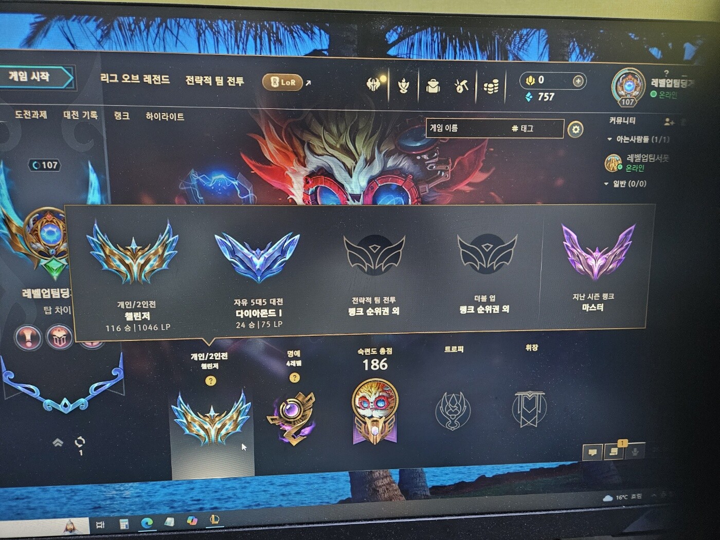 첫 챌린저 승급 사진 감격 ㅎㅎ..