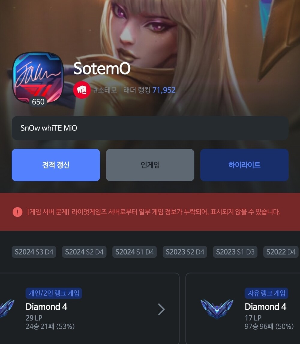 롤체 다이아가 솔랭, 자랭보다 힘드네요