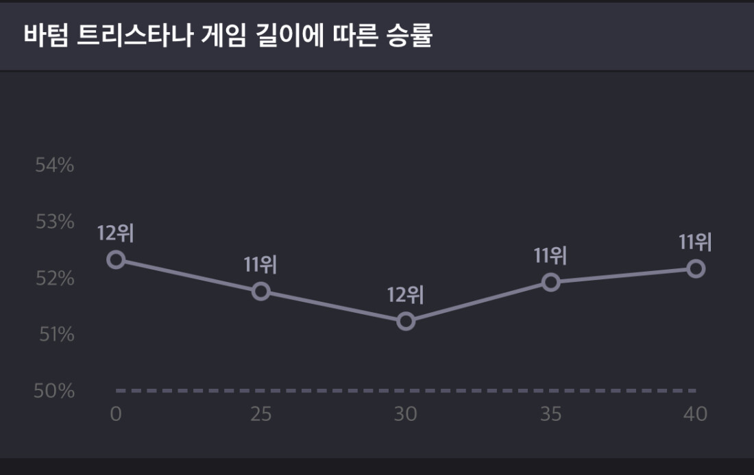 게임 길이별 승률보면 트리스타나는 왕귀챔프 느낌은 아닌거 같은데