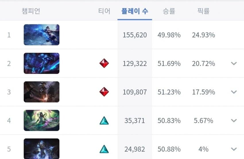 스킨별로 승률 다른거 좀 신기함