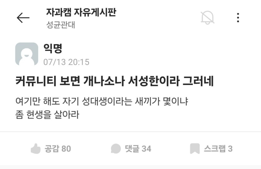 커뮤에선 개나소나 서성한이래 ㅋㅋㅋ