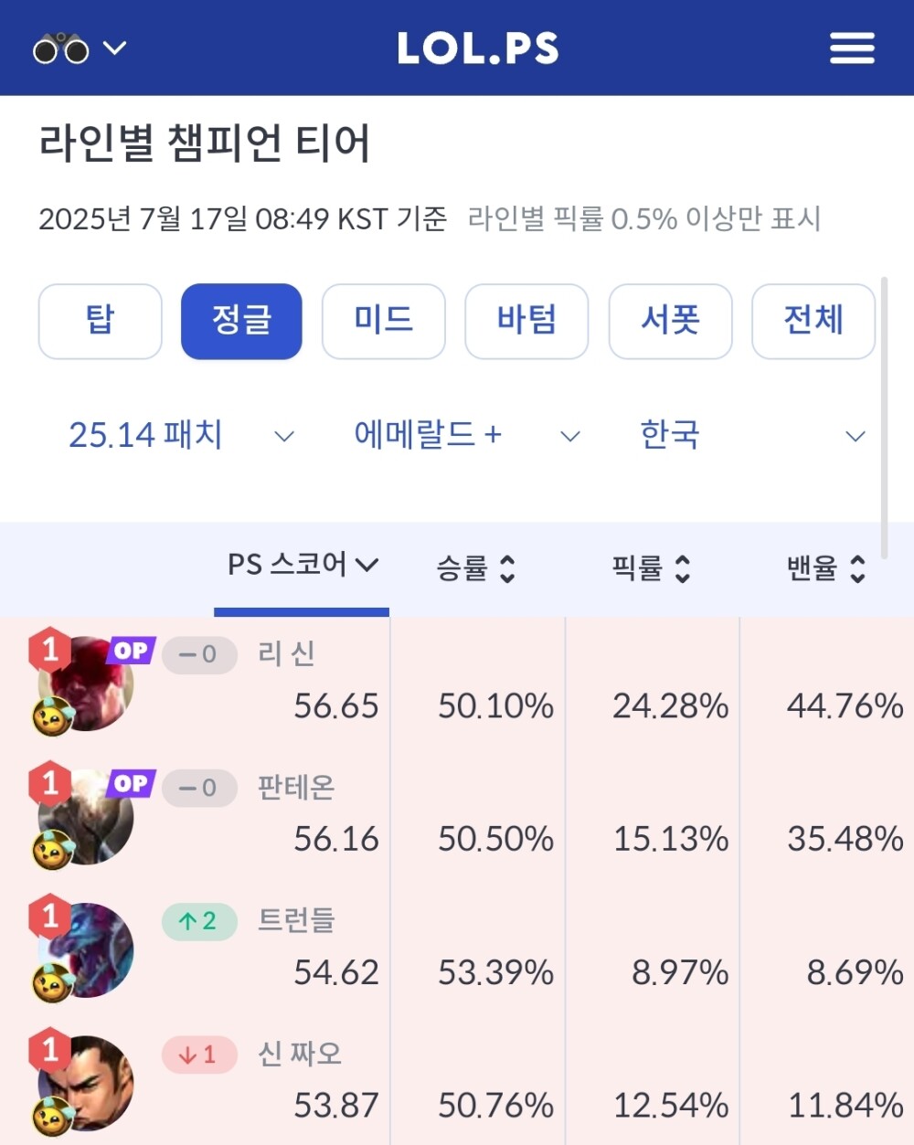 리신 이 새끼 너프 먹었는데 1티어에 OP인거 뭐 하도 처먹은 버프가 많아서 인정. 근데 왜 정글챔이 아닌 미드챔인 빵테온하고 탑챔인 트런들이 왜 1티어인건데!!!