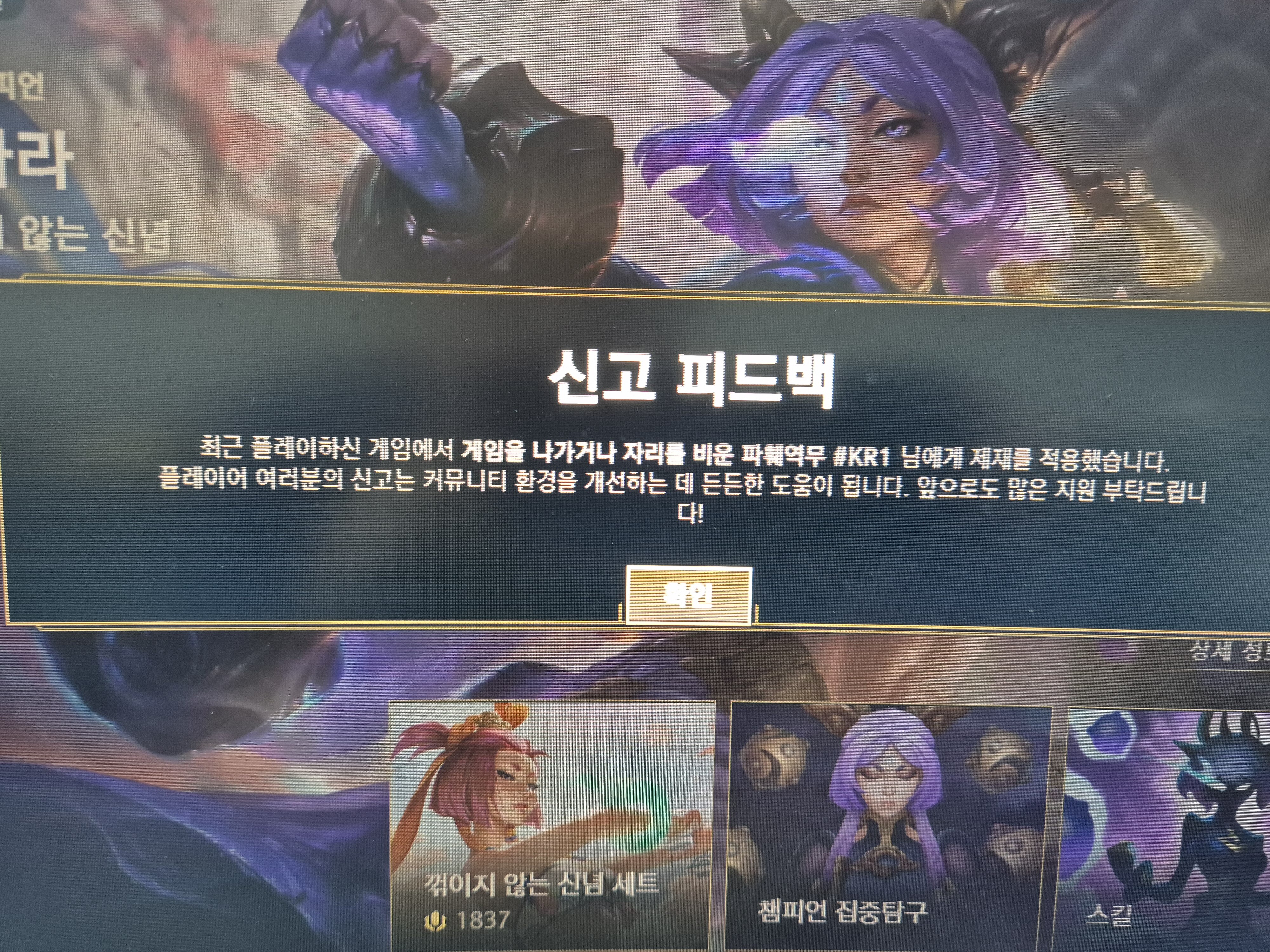 트롤 유저 이름이 나오네 더 통쾌하다 언제 바뀐거지. 이 원딜놈은 실제로 게임나가거나 자리비운게 아니라 혼자 삐져서 게임참여 안하고 그냥 정글만 돌아다녔는데 게임 나간걸로 판단했네ㅋㅋ