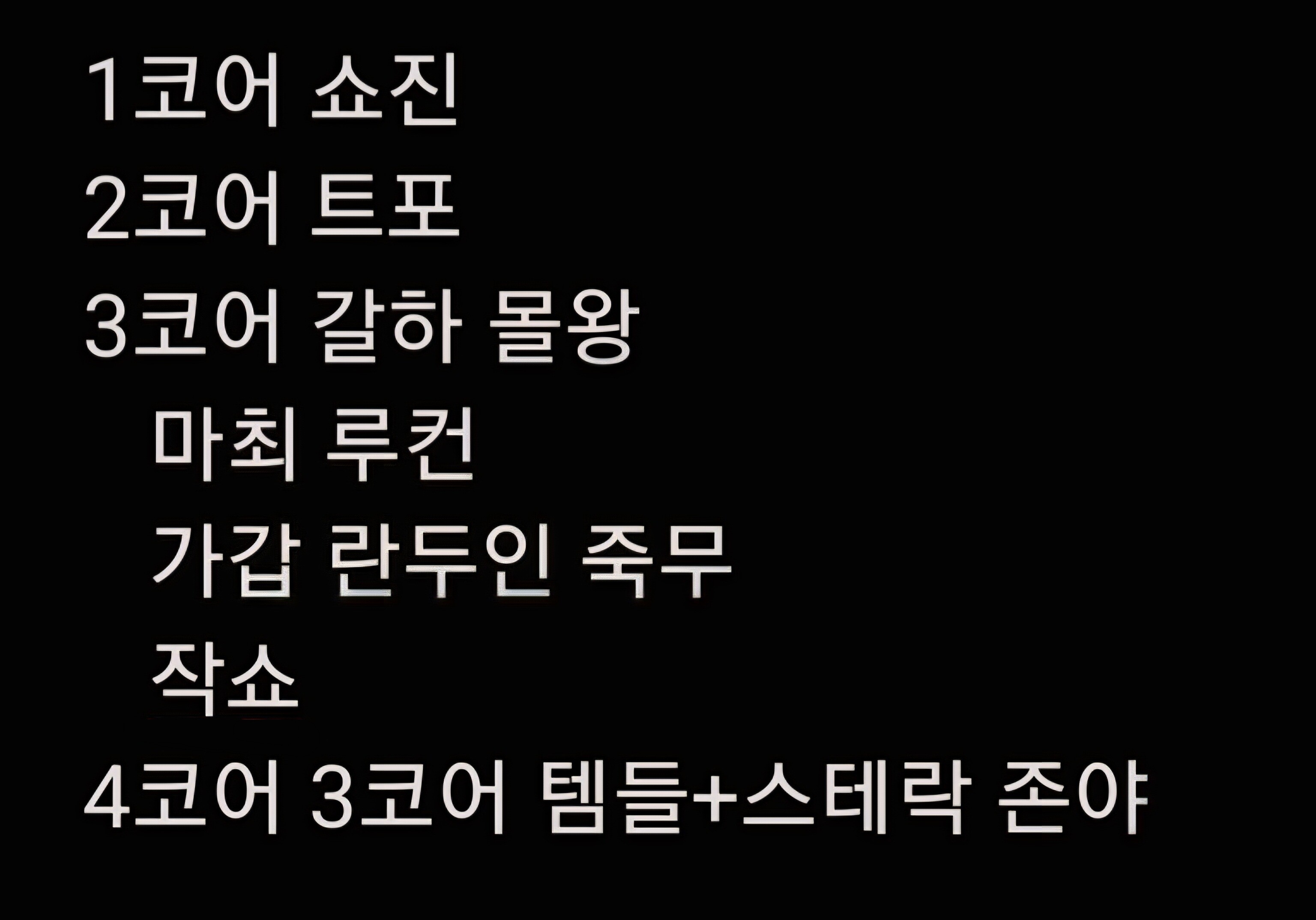 딴사람들 쓰는건 뭔가 맘에 안들음 몸 딴딴하면서 딜은 나오는 템트리 생각해보다가 이정도로 짜봤는데 수정할점좀