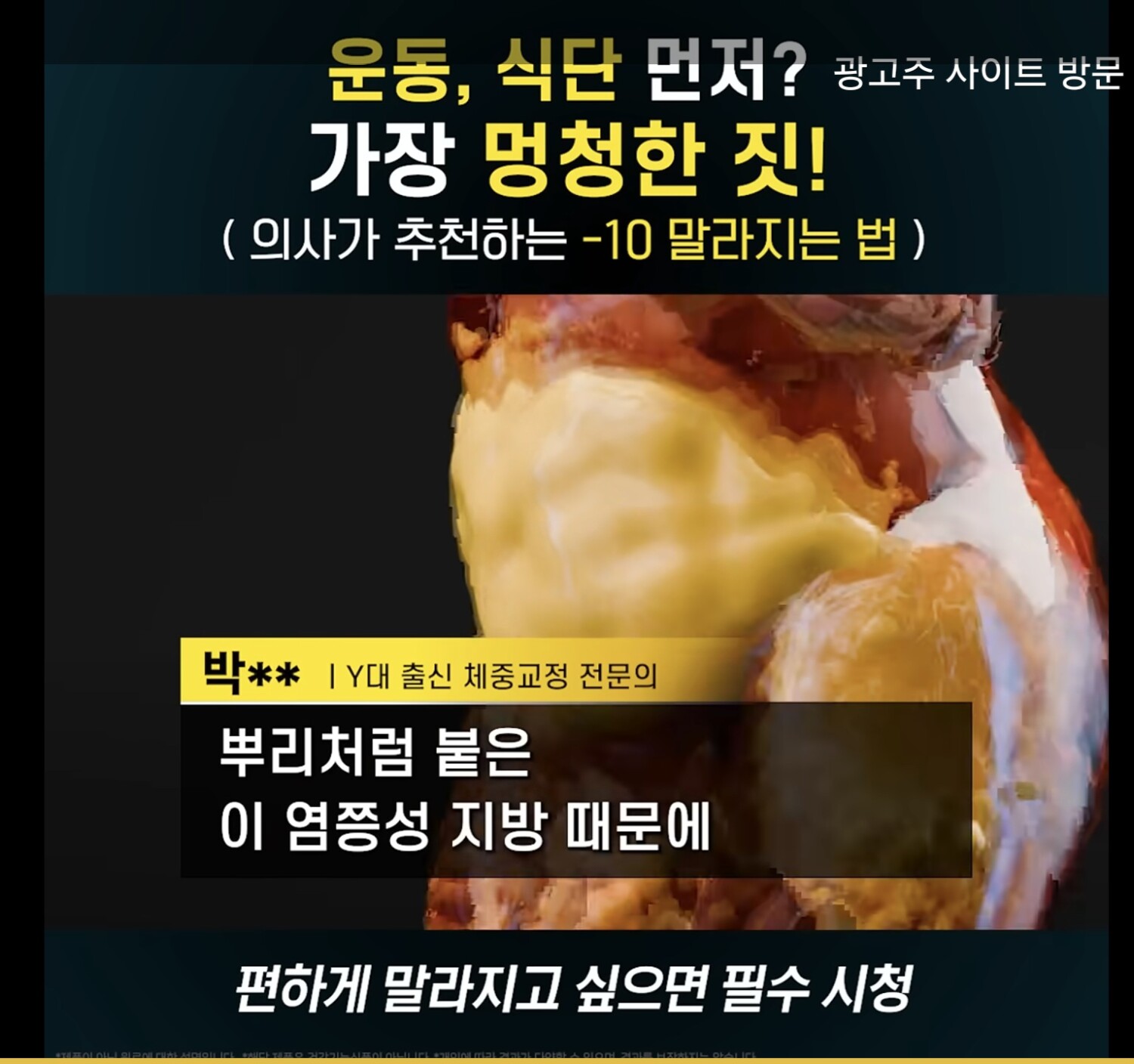 뭐 이딴 의학적 근거도 없는 영상에 틀린 맞춤법 쓰면서 다이어트 약이나 홍보하는 광고가 ㅈㄴ 많다.. 뭐 우리나라 광고는 이제 중국인들이 만드나 보네