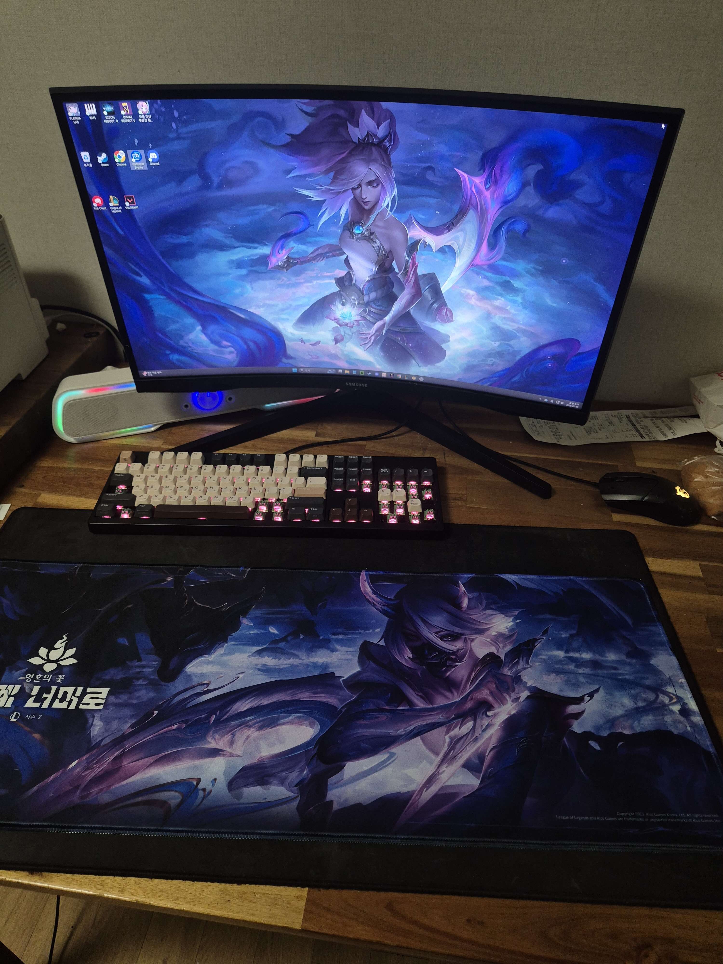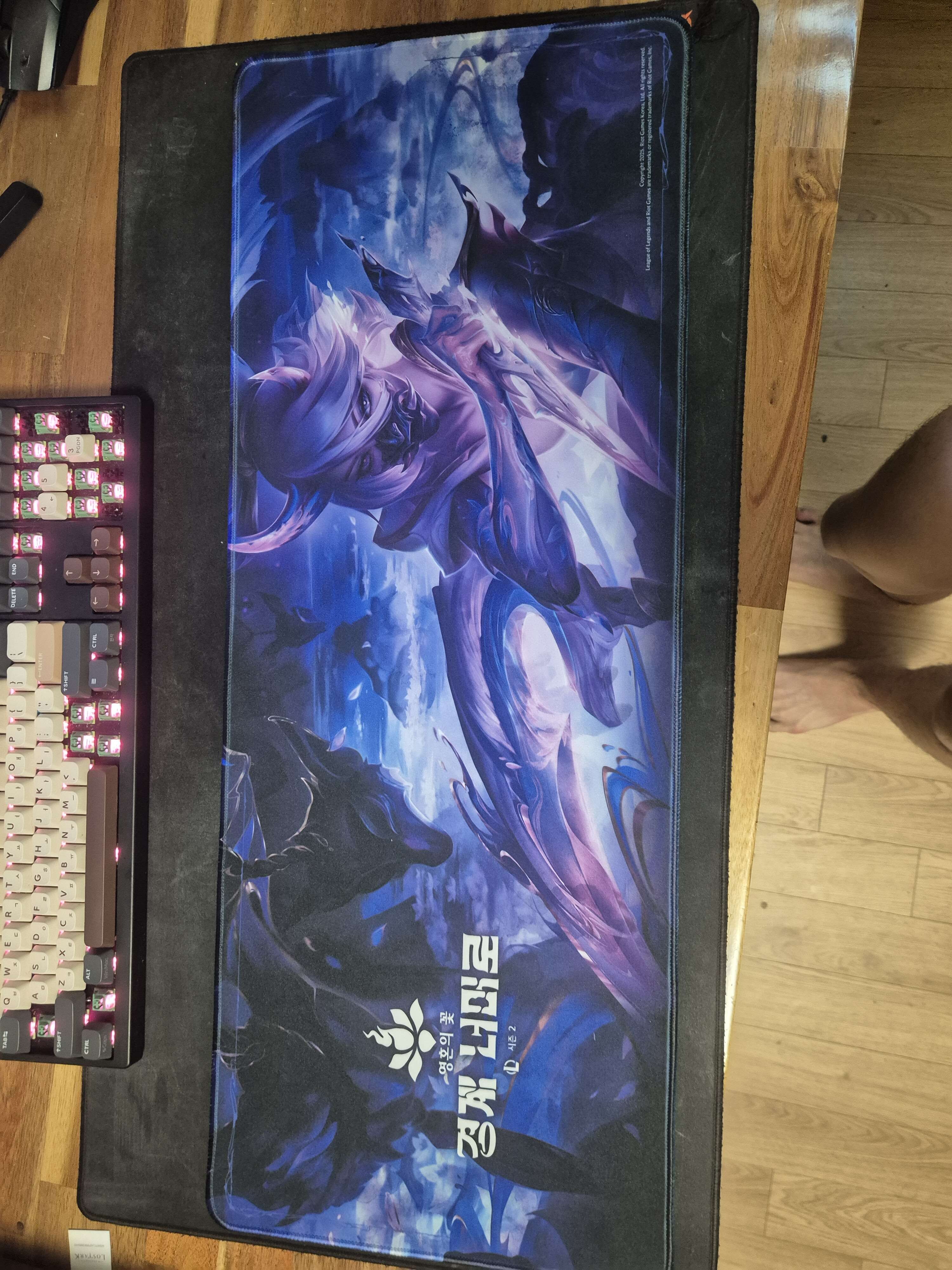 실물사진임 생각보다 어두컴컴해서 엥 했다가 마우스 패드인거 생각하면 오히려 채도 낮은 편이 좋은거같음