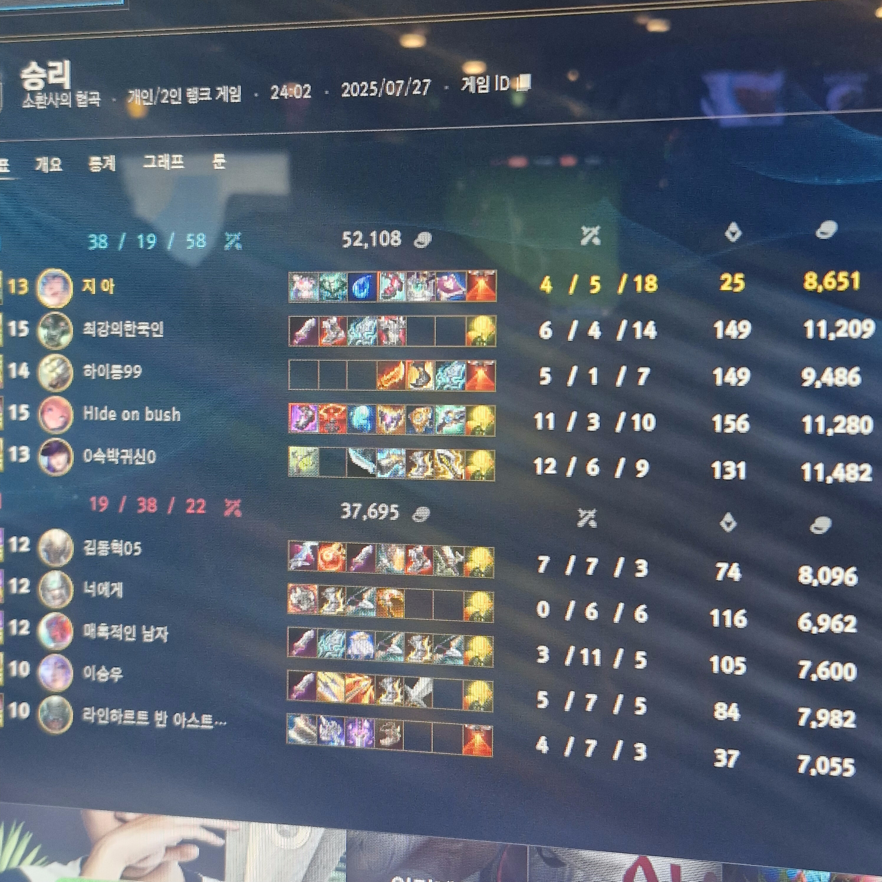 이게 브실골이지. 소나가 딜 2만을 찍는 레전드 티어.