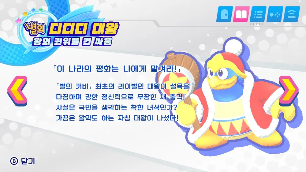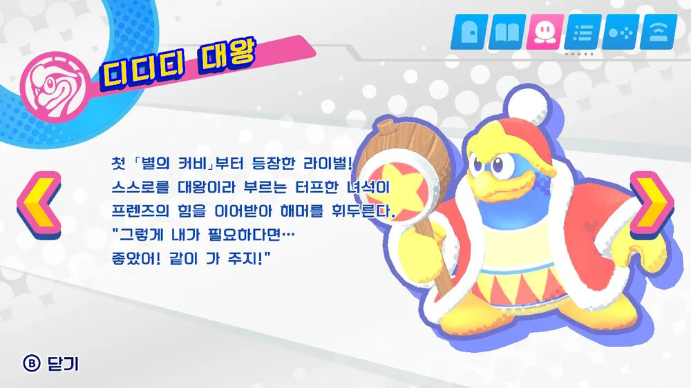사실 이 친구는 커비 시리즈 첫작품에서야 욕심 많은 폭군 이미지의 최종보스였지 이후엔 납치, 세뇌 당해서 중간보스로 나올때가 더 많았음