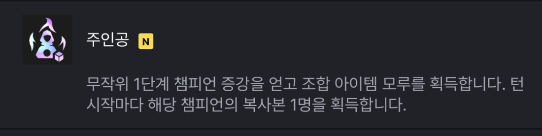 플레 증강체 “주인공” 이거 꼭 드세요 이거 세 번 먹었는데 먹은 세 판 다 일등함 케넨 영증으로는 아직 안해봤는데 케넨 영증 통계가 사기라 뭐가 나와도 좋을 듯 파워업은 성장형 먹는게 좋은거 같아요. 가렌이랑 자크는 9000초과 먹었고 말파는 처치관여시 주문력 영구 증가 먹음. 참고로 말파 거결은 별로인듯 플플플때는 안해봐서 모르겠는데 밸류 떨어질거 같긴 함. 플플플 아닐때 뜨면 꼭 드셔보세요