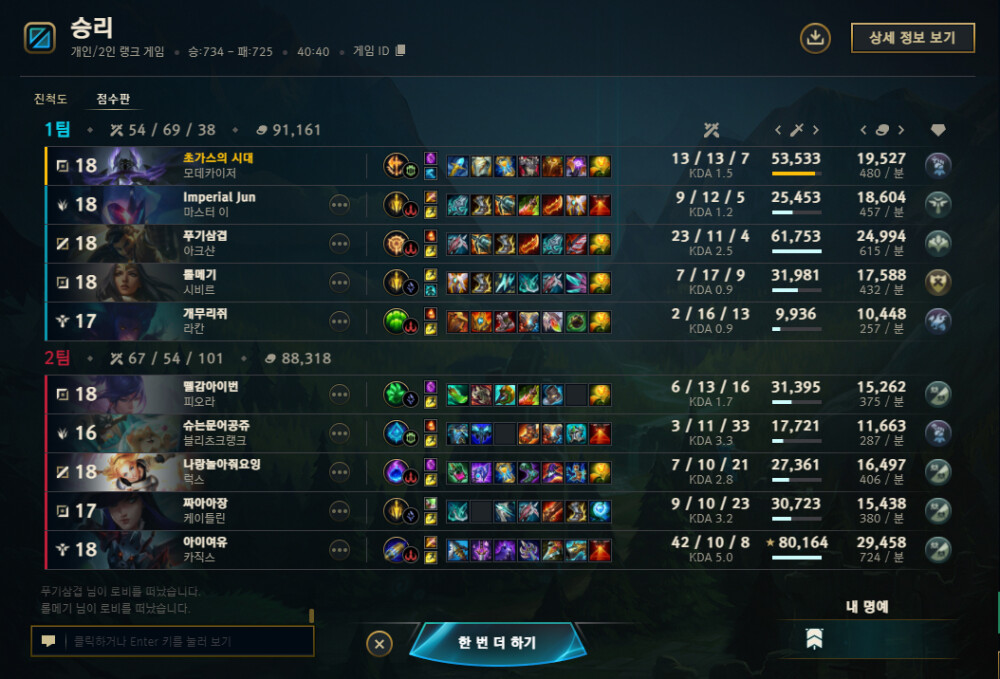 2년전 이맘때쯤 신화템시절 결과창 스샷 찾아냄..
