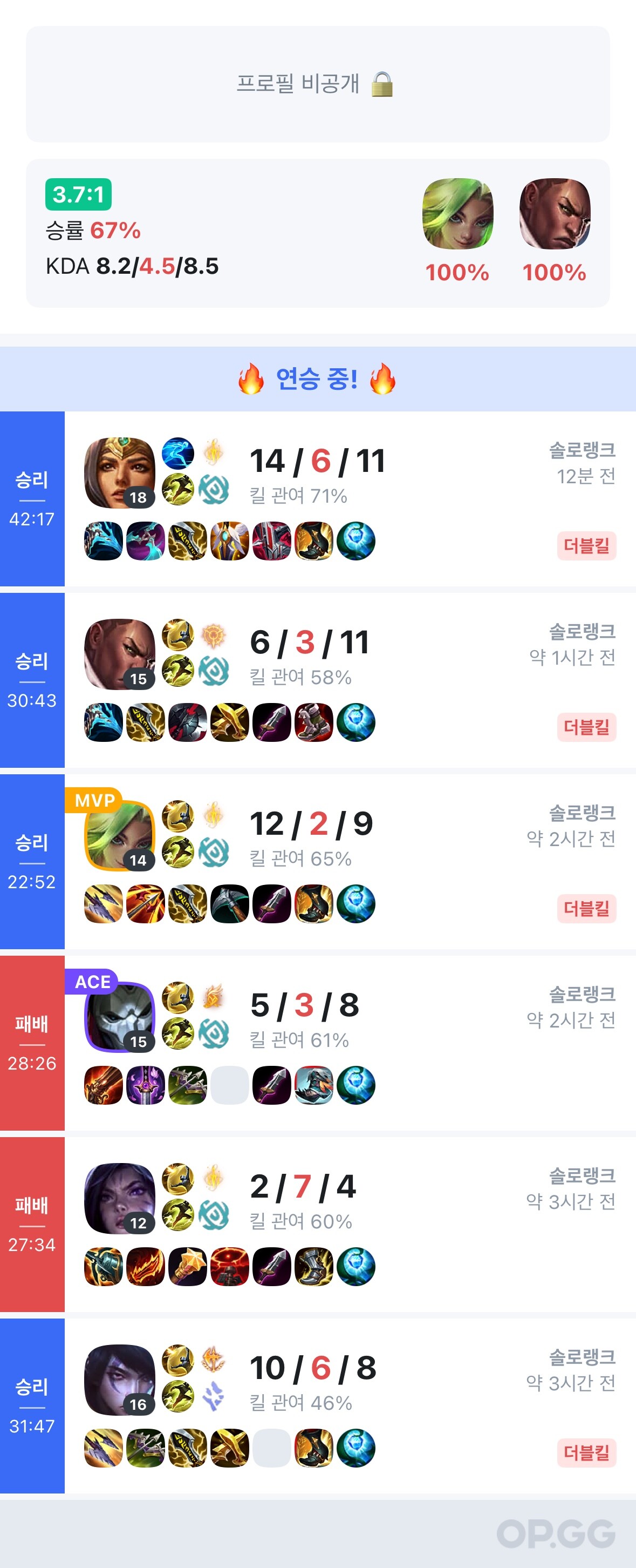 진~루시안판 미드, 정글 듀오 같은 애들 만나서 재밌게 했음 ㅇㅇ 그리고 마지막 판은 아쉽게도 걔네 못 만났지만 이기고 깔끔하게 승급 시비르 판 42분 81000 박아야 이기더라 너무 힘들다